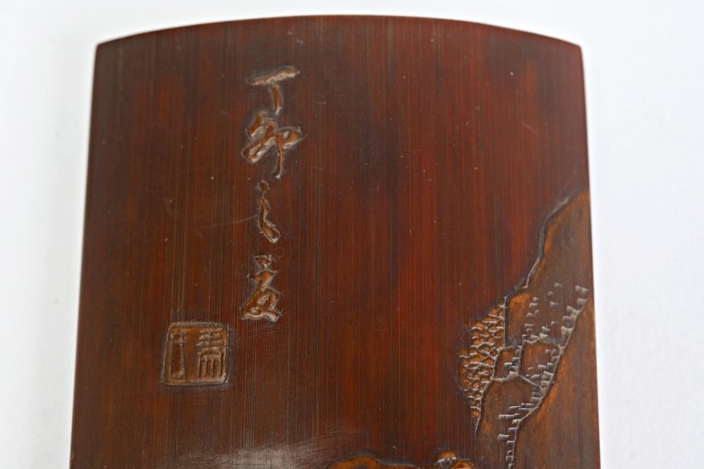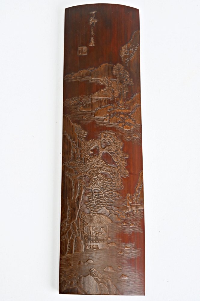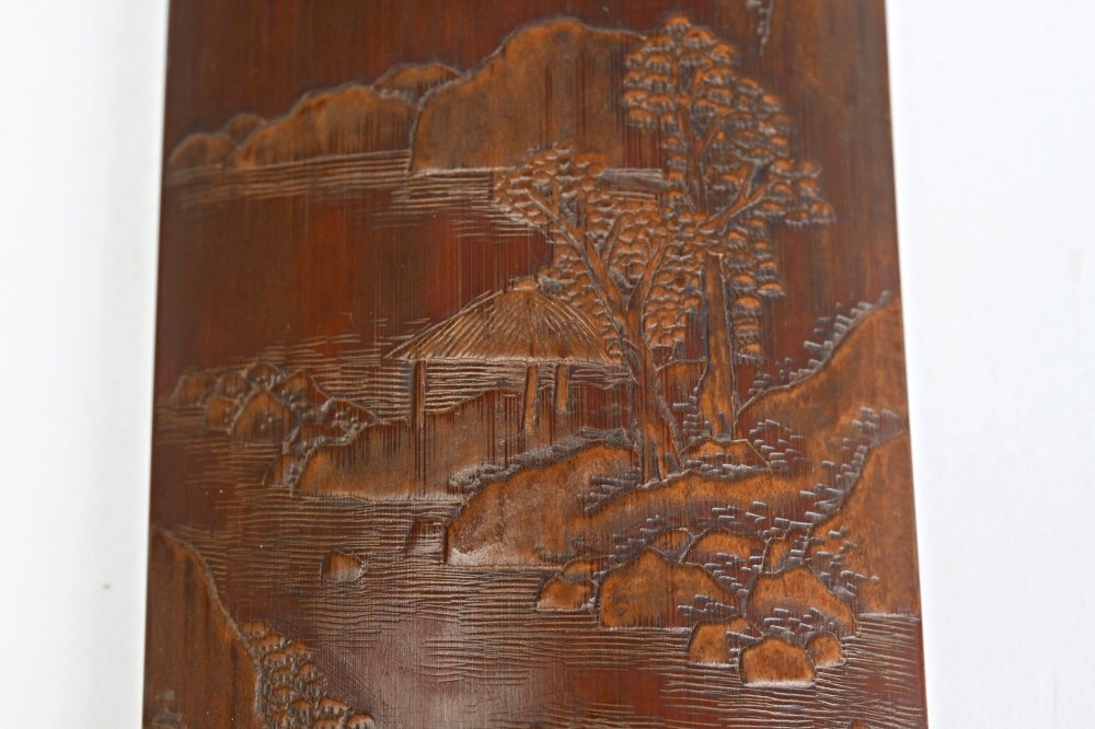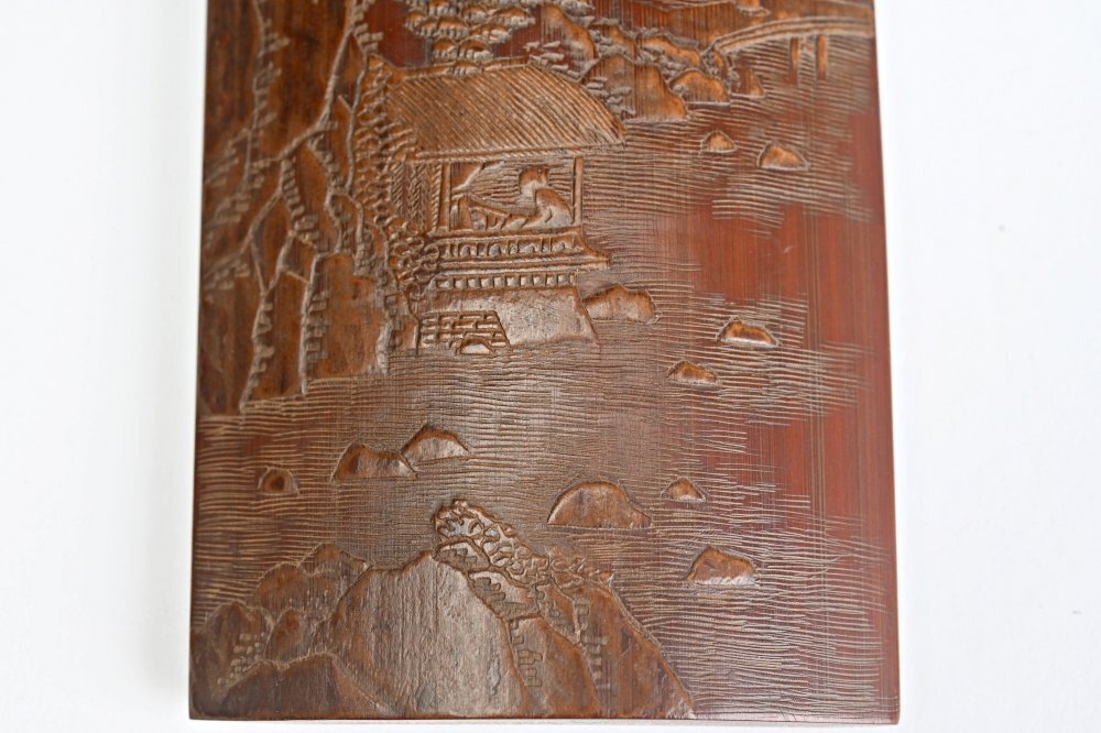 IJ1805■竹彫 茶合 楼閣山水文彫 煎茶道具◆hc