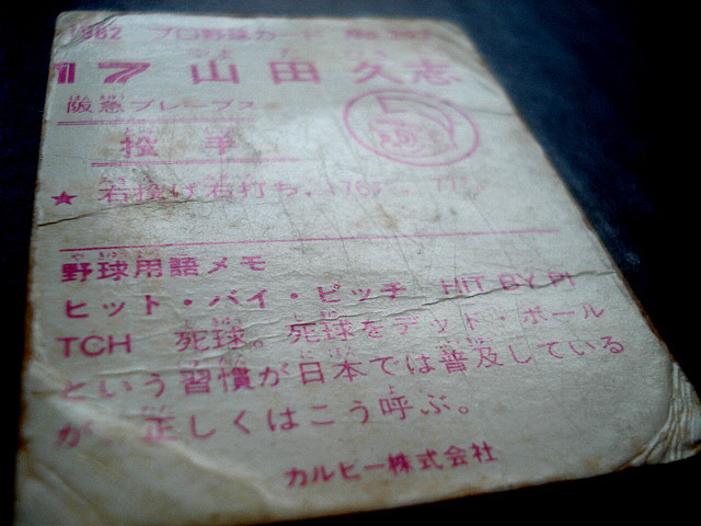 カルビー 1982年 393番 山田久志 阪急ブレーブス プロ野球カード 地方版 レアブロック