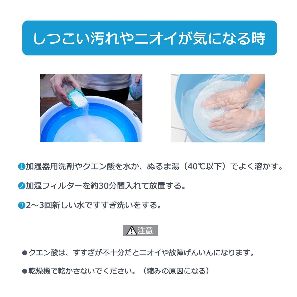 【洗いOK】洗剤などでフィルターを定期的にお手入れして、加湿器をより長く使えることができます。お手入れの目安は約1ヶ月に1回です(※水質により汚れ具合が変わるため、1ヶ月以内でもニオイがしたりタンクの水が減りにくい場合はお手入れをしてください)。