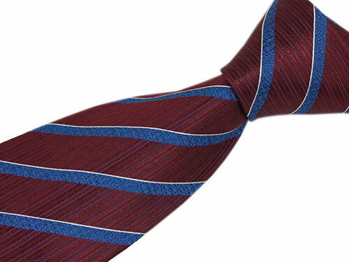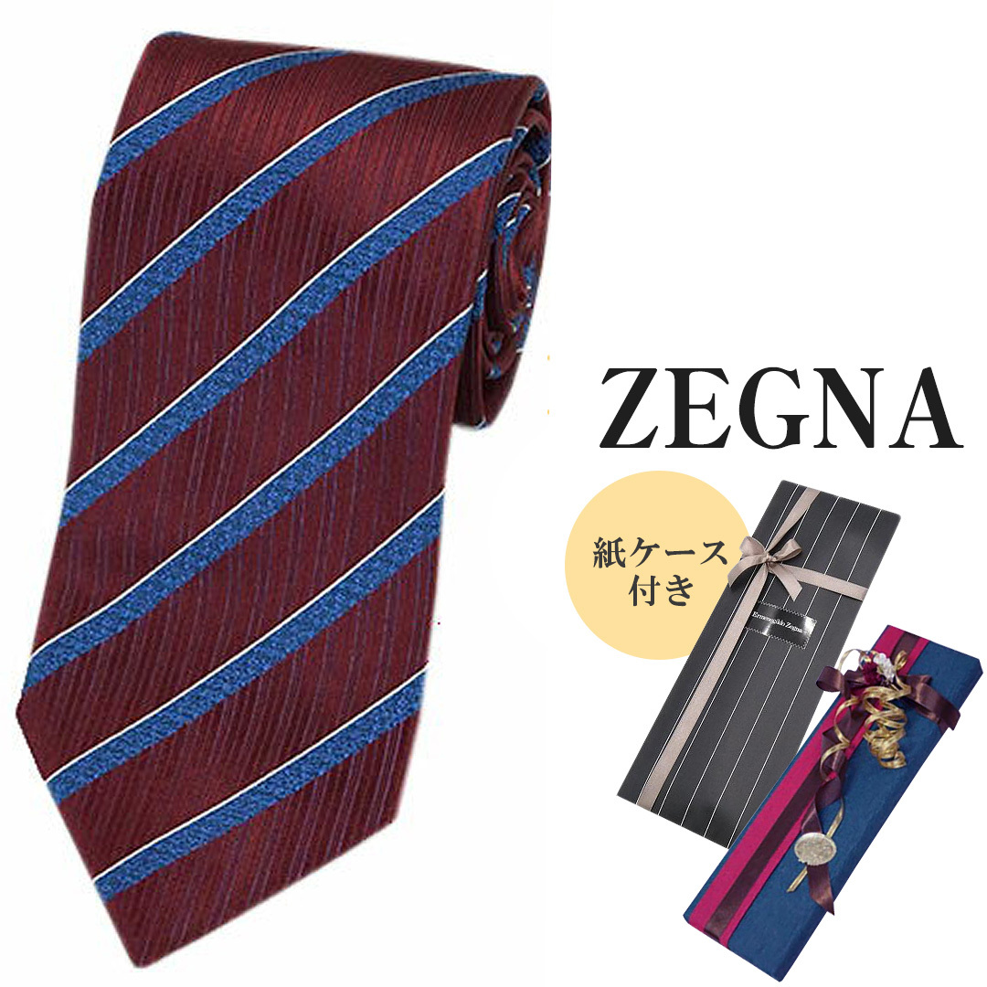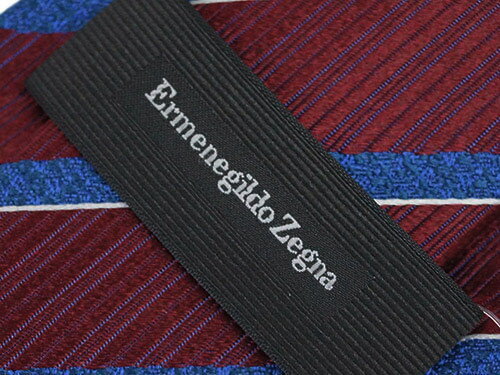 未使用 ゼニア ブランド ネクタイ エルメネジルド・ゼニア ストライプ 高級 シルク 100% ボルドー ワインレッド ブルー 赤 青