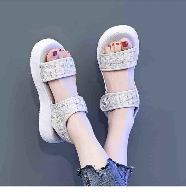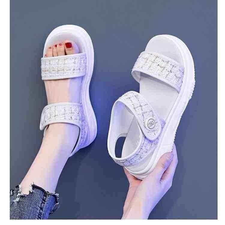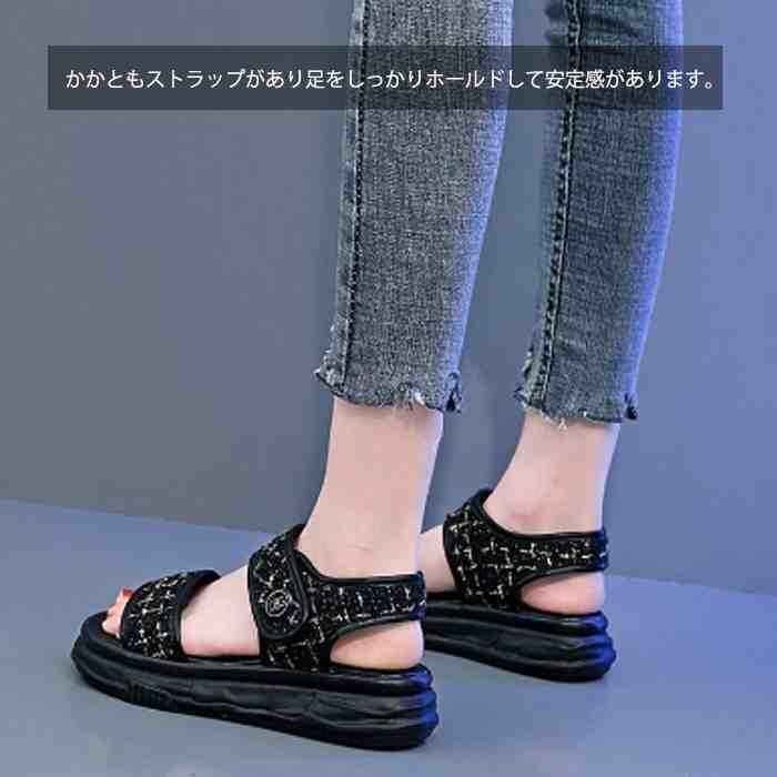 ・ツイード調がフェミニンな厚底スポーツサンダル。
