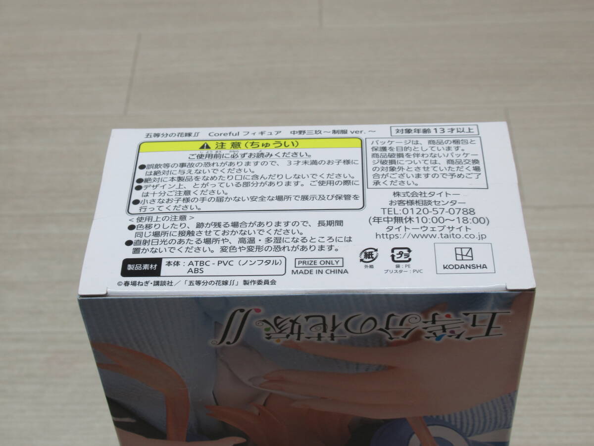 08/Y635★五等分の花嫁∬ Coreful フィギュア 中野三玖~制服ver.~ ★タイトープライズ