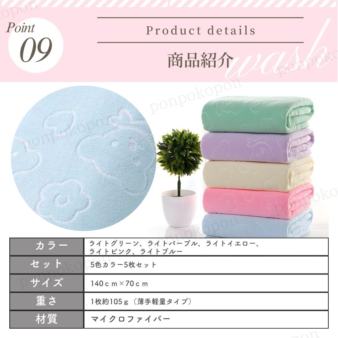 | ご覧いただきありがとうございます。 ◎ふんわり柔らかな マイクロファイバー素材の大判バスタオル。 吸水性に優れ、速乾タイプなので毎日のお風呂はもちろん、プールやジム、旅行や温泉でも大活躍! ◎ソフトな肌触りで、赤ちゃんや小さなお子様、ペット用にも安心してお使いいただけます。 可愛いくま柄、ハート、お花デザインの速乾バスタオル5枚セット! 【吸水性と通気性】 ・柔らかいマイクロファイバー素材で汗も水もしっかり吸収し速乾性に優れております。 【薄手軽量タイプ】 ・コンパクトに収納できるので持ち運びが楽々。ジム・旅行・温泉・アウトドアなどにも最適。 【独自技術の縫製】 ・繊維がしっかりしており、抜けにくく強くて長持ち。 【パステルカラー5枚セット】 ・あらゆるシーンで使いわけられる、使い勝手のよい5枚セットになります。 【あらゆるシーンで活躍】 ・サイズも大きく、薄手の生地になりますのでブランケットやタオルケット、ジムやアウトドアにも最適なバスタオルになります。 《商品詳細》 枚数:5枚セット 素材:マイクロファイバー サイズ:約140cm×70cm カラー:ライトグリーン、ライトパープル、ライトイエロー、ライトピンク、ライトブルー 【注意事項】 ※専用/取り置きには対応しておりません。在庫はございますので、購入前のコメントは不要ですので、そのままご購入下さい。 ※できる限り商品をお安く提供できるように、簡易梱包、商品によってはコンパクトに梱包しておりますので、ご了承ください。 《画像に関して》 ※画像転載を発見し次第通報します。 | |||