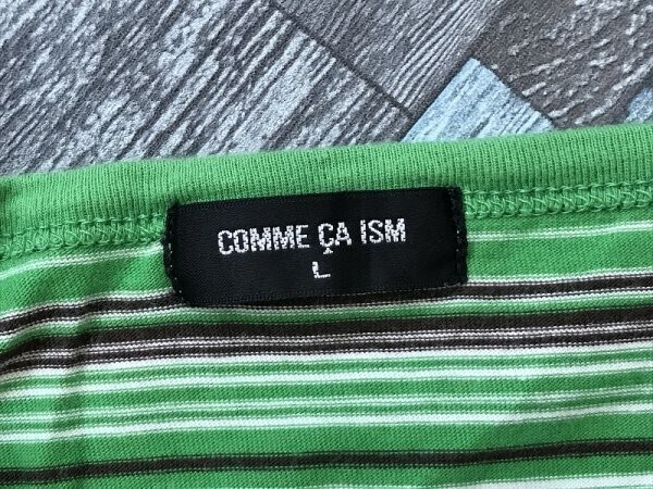 COMME CA ISM コムサイズ メンズ マルチボーダー 半袖Tシャツ L 緑白茶 です。