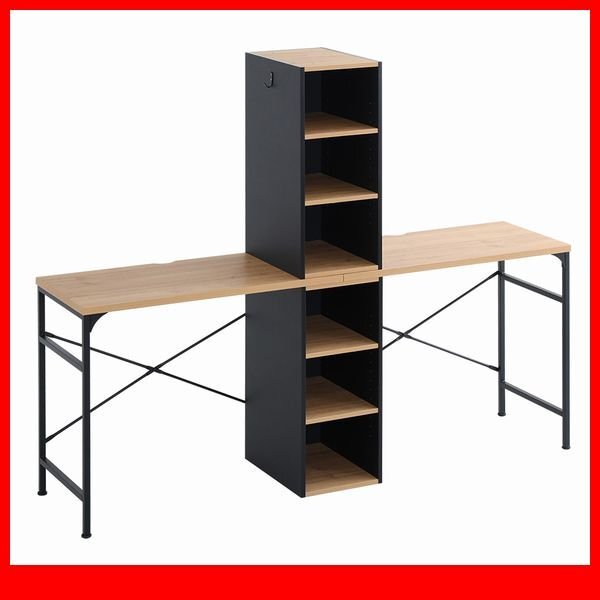 子供が成長してもずっと使えるヴィンテージツインデスク! いろいろな組み換えができる仕様になっております。 天板連結パターンにすると2人仲良く勉強や相談ができます。 ラックのサイドはフックが付いており、ランドセルやカバンを掛けることができます。 天板上部にはコードを通す穴が開いているので便利です。 高さ調整ができるラック棚には教科書や小物を収納できます。 天板幅は90cmあるので、広々お使い頂けます。 |