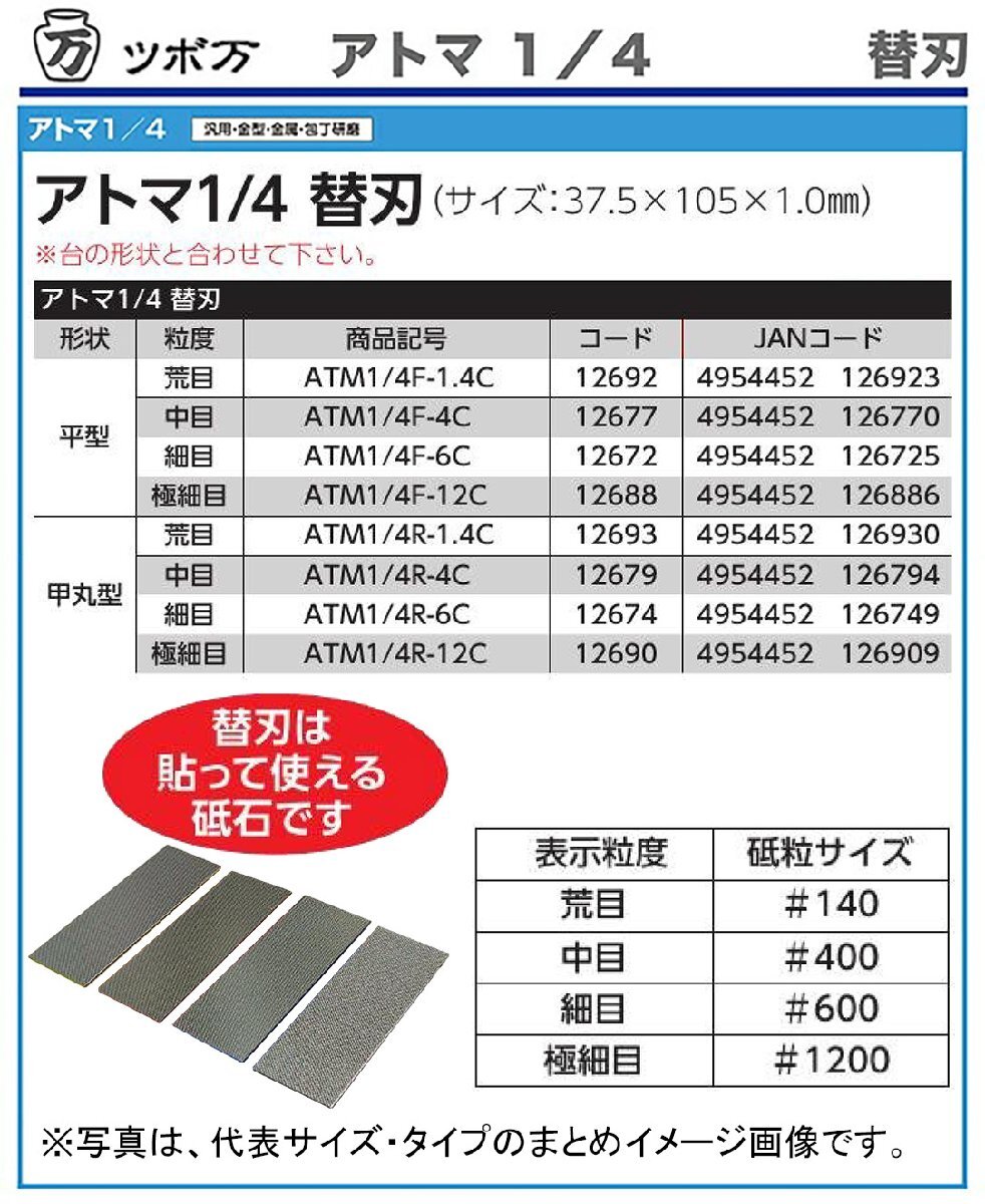 〈ツボ万〉 アトマ 1/4 替刃 甲丸型 荒目 ATM1/4R-1.4C JAN:4954452126930