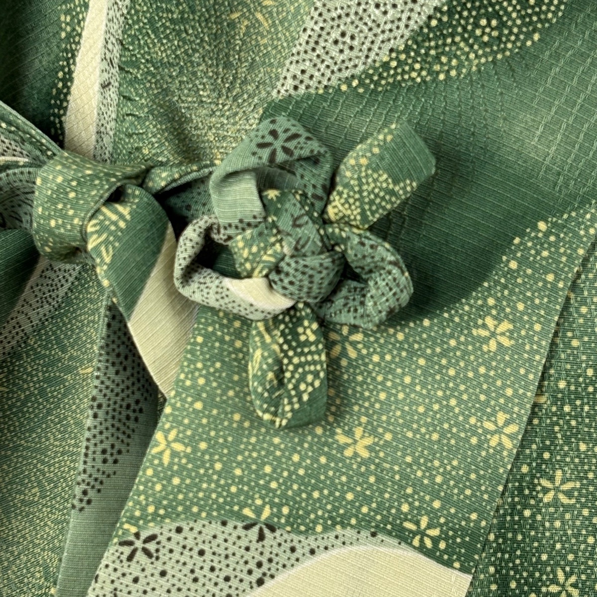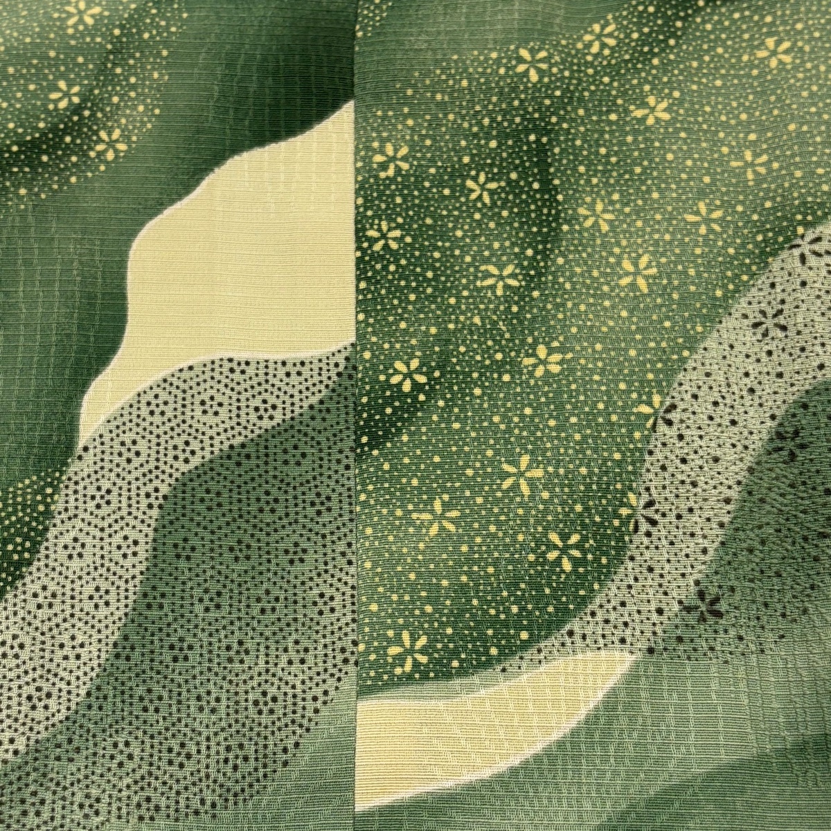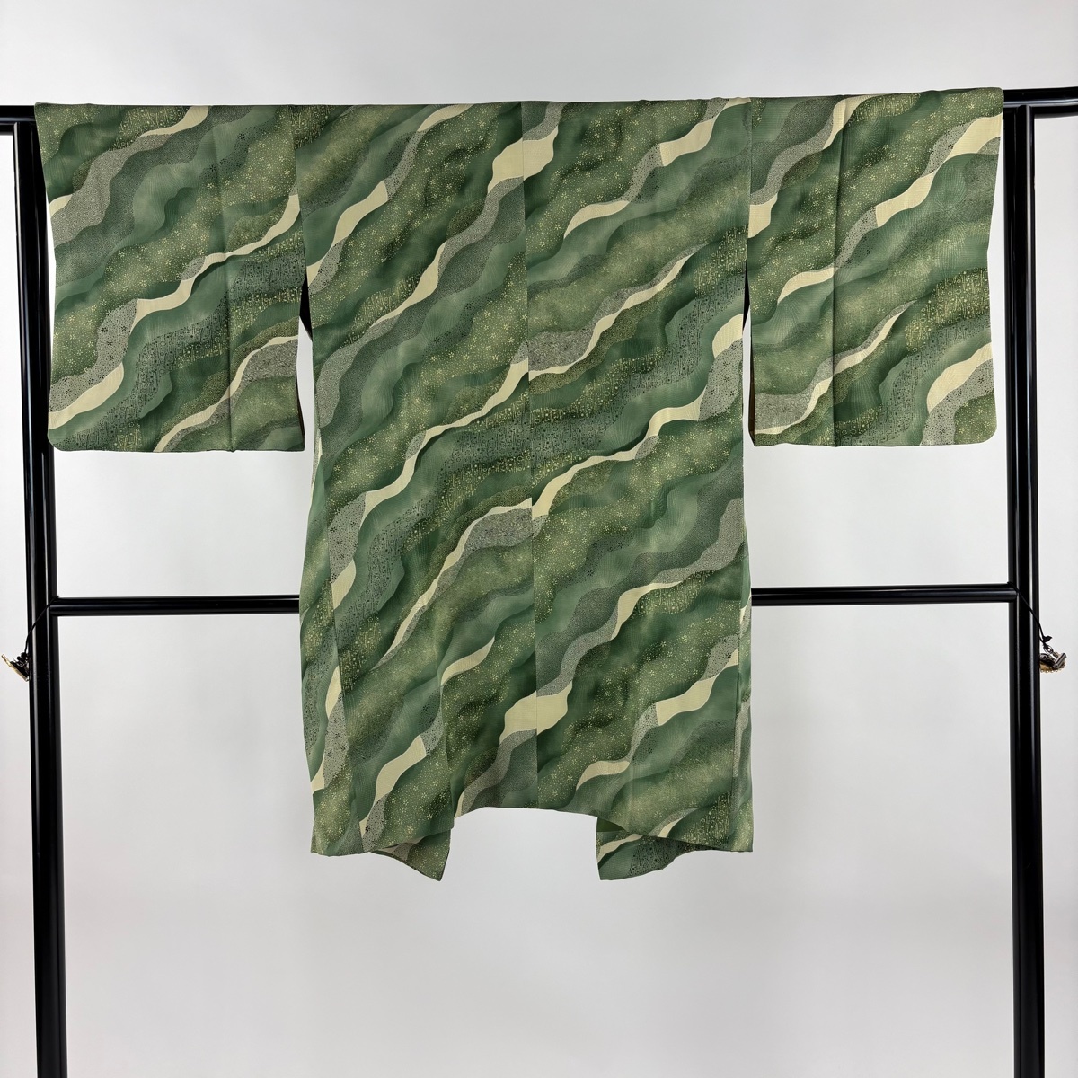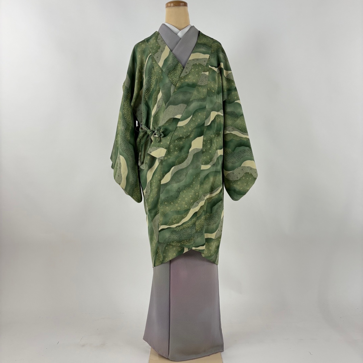 | 道中着 美品 名品 和装コート 着物衿 小花 亀甲 ぼかし 緑 身丈99 裄丈63 S 正絹 【中古】 |