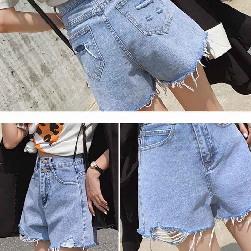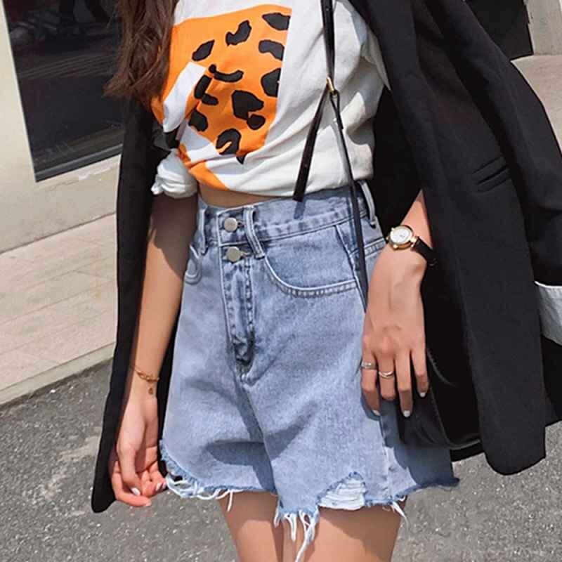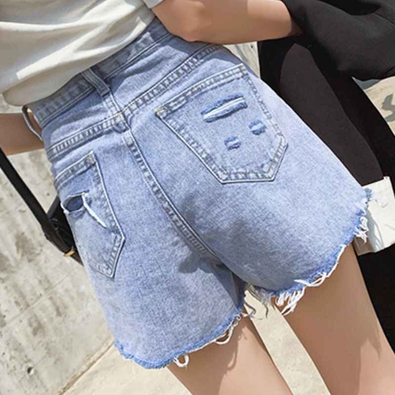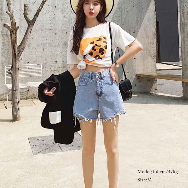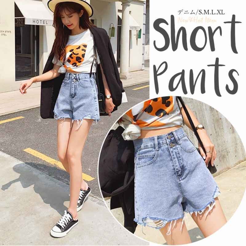 程よい短めの丈感でハイウエストとフロントボタンがオシャレなデニムショートパンツ