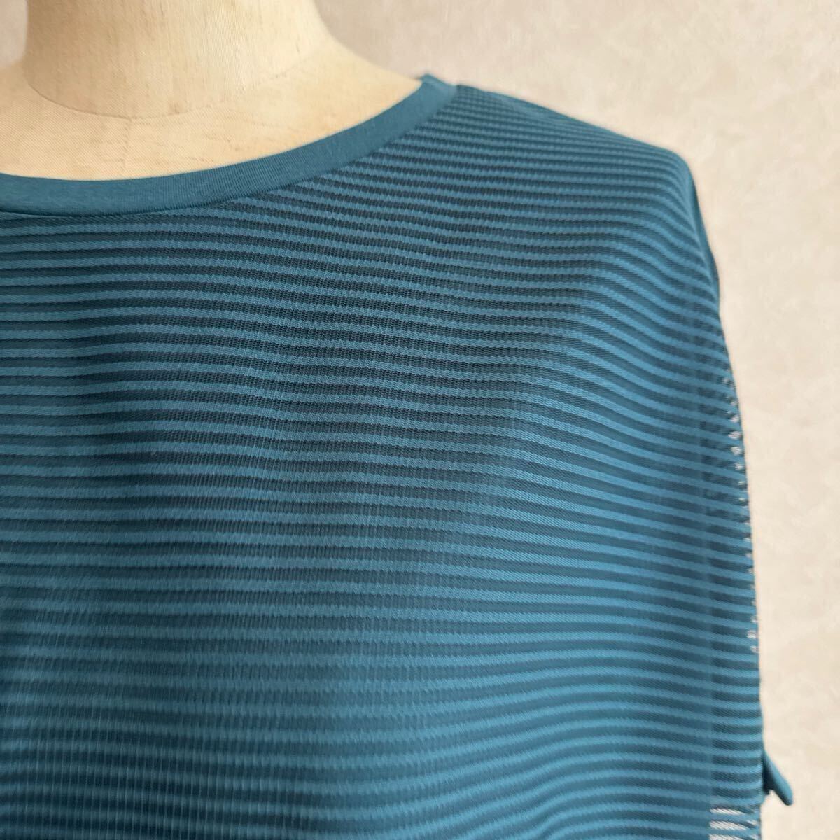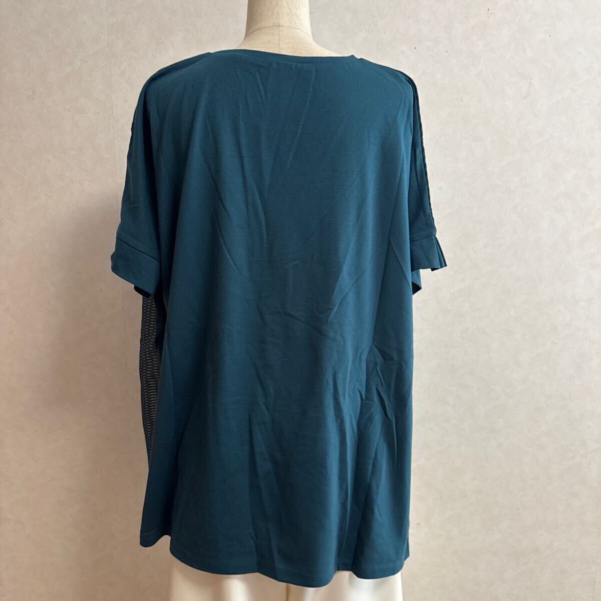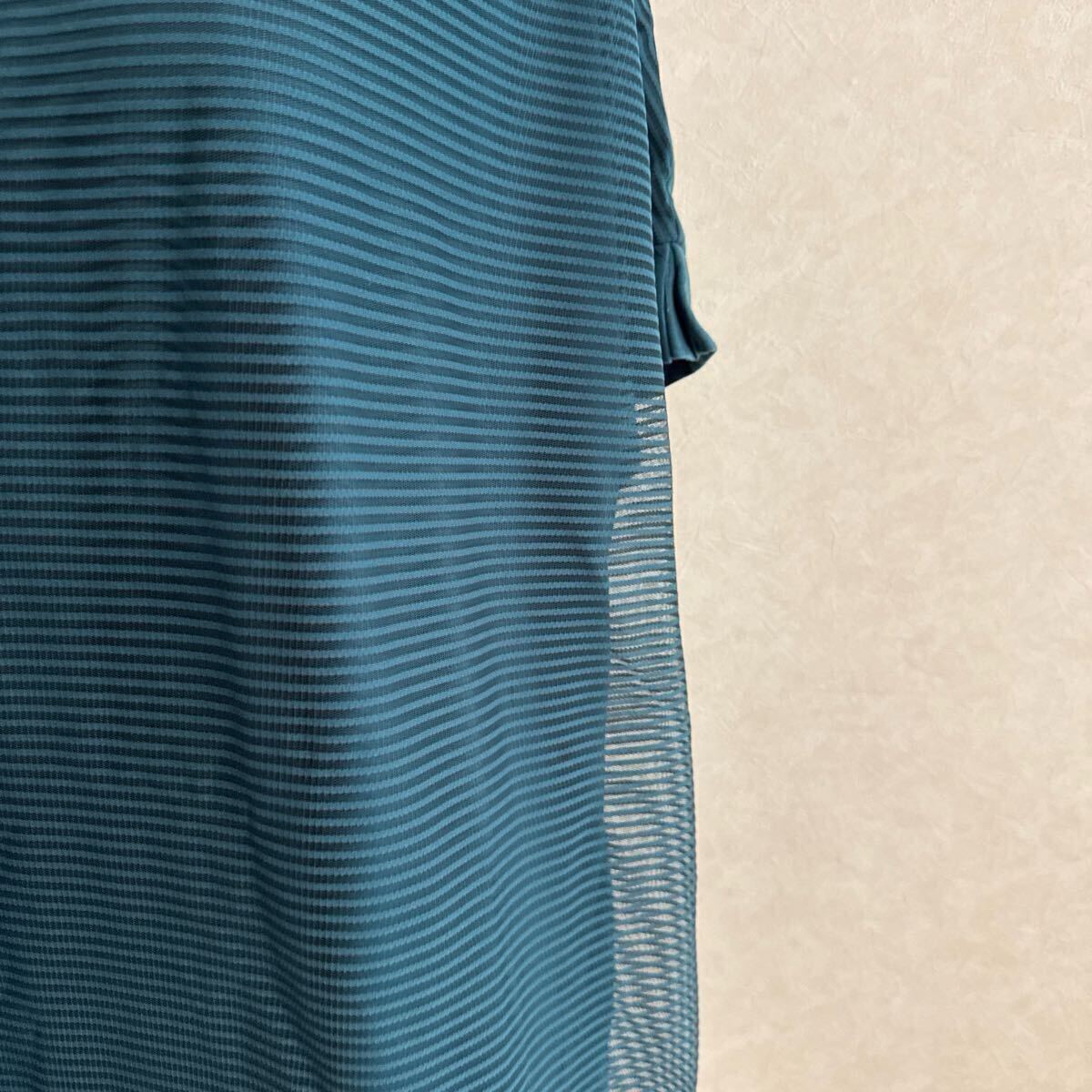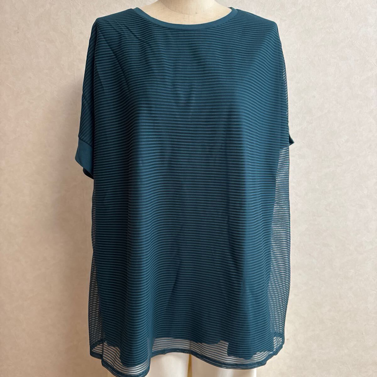 KN2931*5L 大きいサイズ ボーダーチュール重ね、チュニックターコイズ