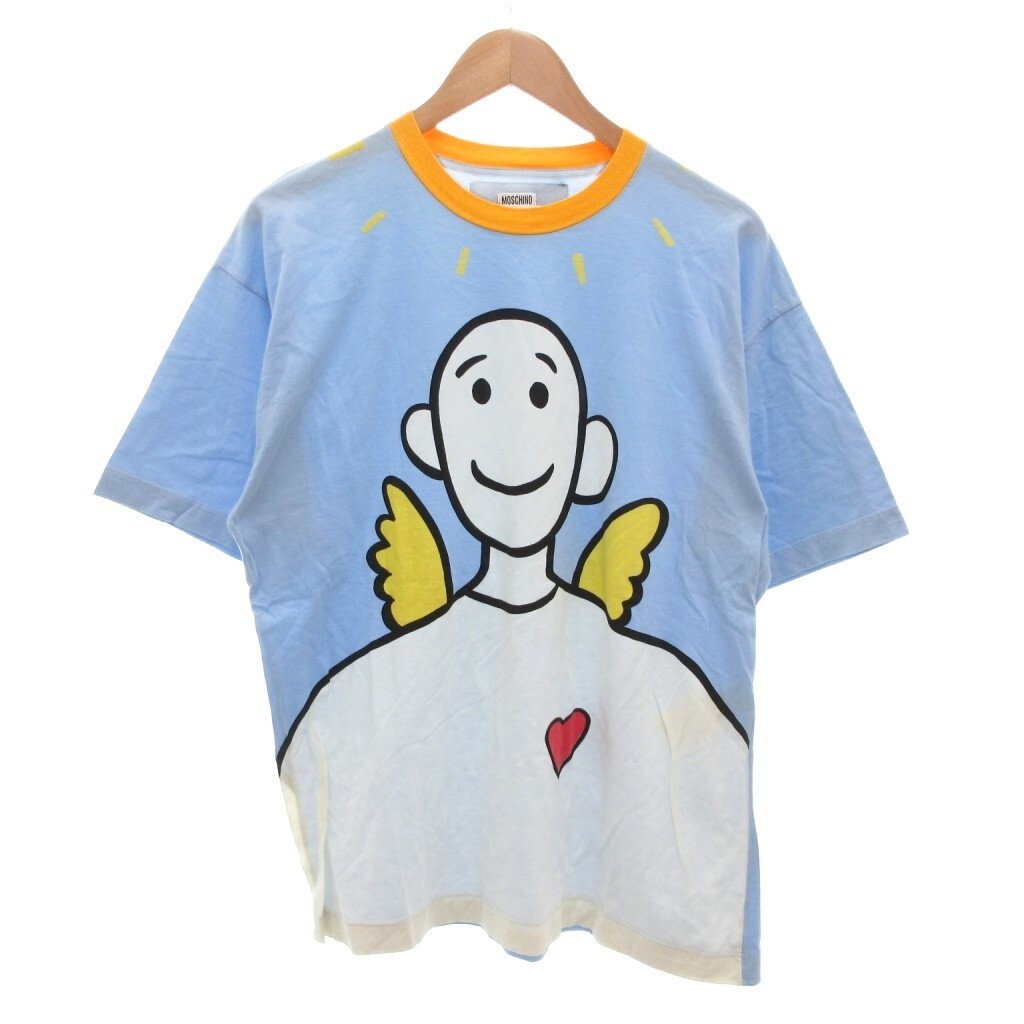 モスキーノジーンズ MOSCHINO JEANS Tシャツ カットソー S 青 ブルー プリント 天使 エンジェル ハート /FF ■ECT レディース
