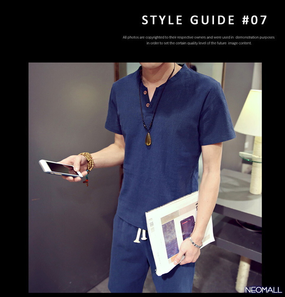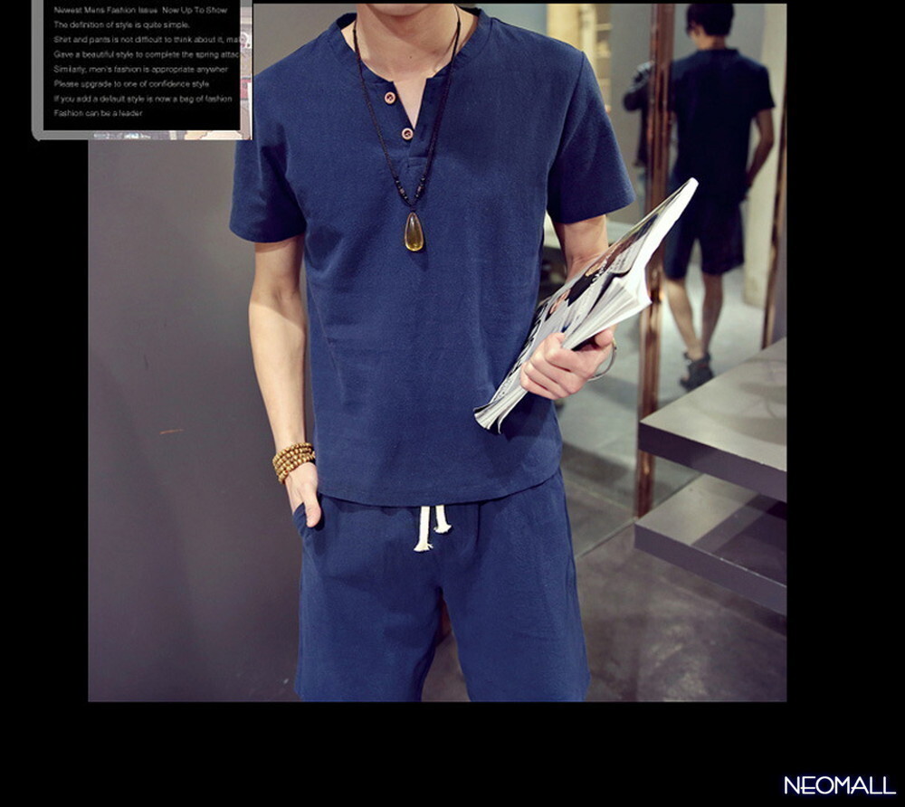 1スタ☆【276】 新品 サマーコットン ヘンリーネック セットアップ ネイビー 3XLサイズ 春 夏 部屋着 ルームウエア