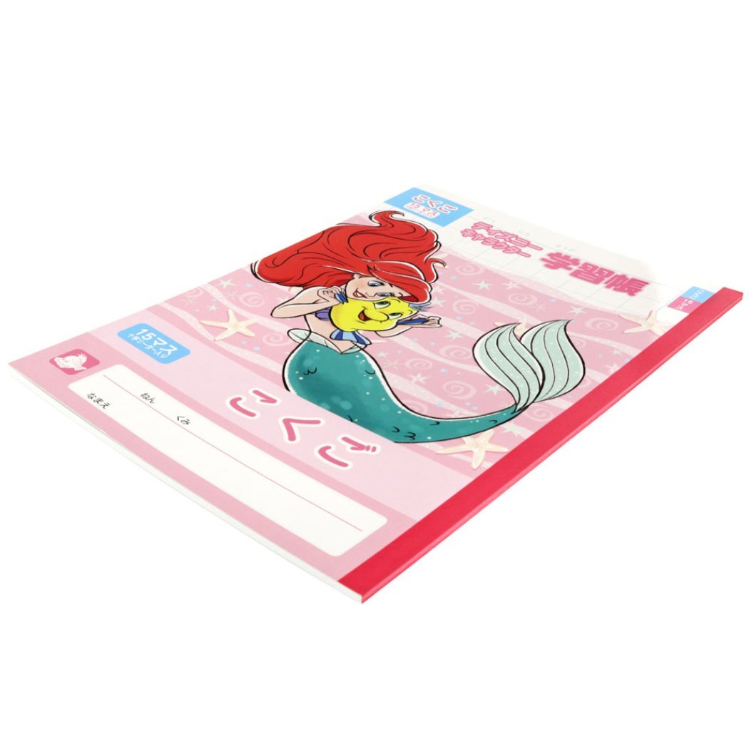 こくごノート2年生から4年生対応 ディズニープリンセス[Little Mermaid/アリエル]のキュートなステーショナリーシリーズこちらは定番アイテム[B5こくごノート]中面は15マスでノートの表面に名前も書けるからとっても便利。可愛いノートで勉強もはかどる可愛い文具いろいろあるので揃えてくださいサイズ:約178x252mm(B5)[Made in Japan]