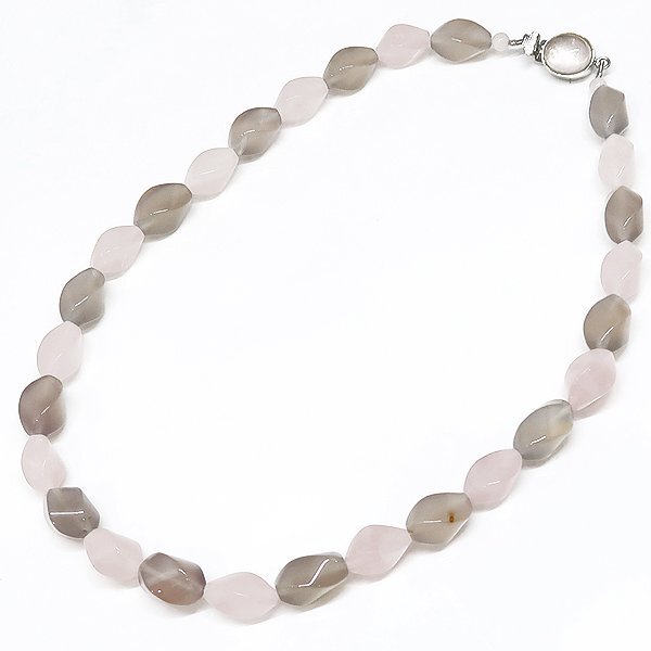 DKG★送料無料 BNS56★ 天然石 ローズクォーツ グレーアゲート ネックレス 約41cm 紅水晶 灰瑪瑙