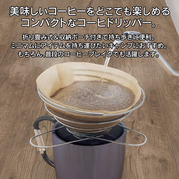 コーヒードリッパー 珈琲 コーヒーバネット 簡単 軽量 収納ポーチ付き 登山 アウトドア キャンプ 調理器具 送料無料 5M◇ドリップフレーム