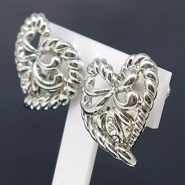 DKG★送料無料 BVA864★ ハート ラインストーン イヤリング ネジバネ式 ハートイヤリング デザインイヤリング ドレスイヤリング
