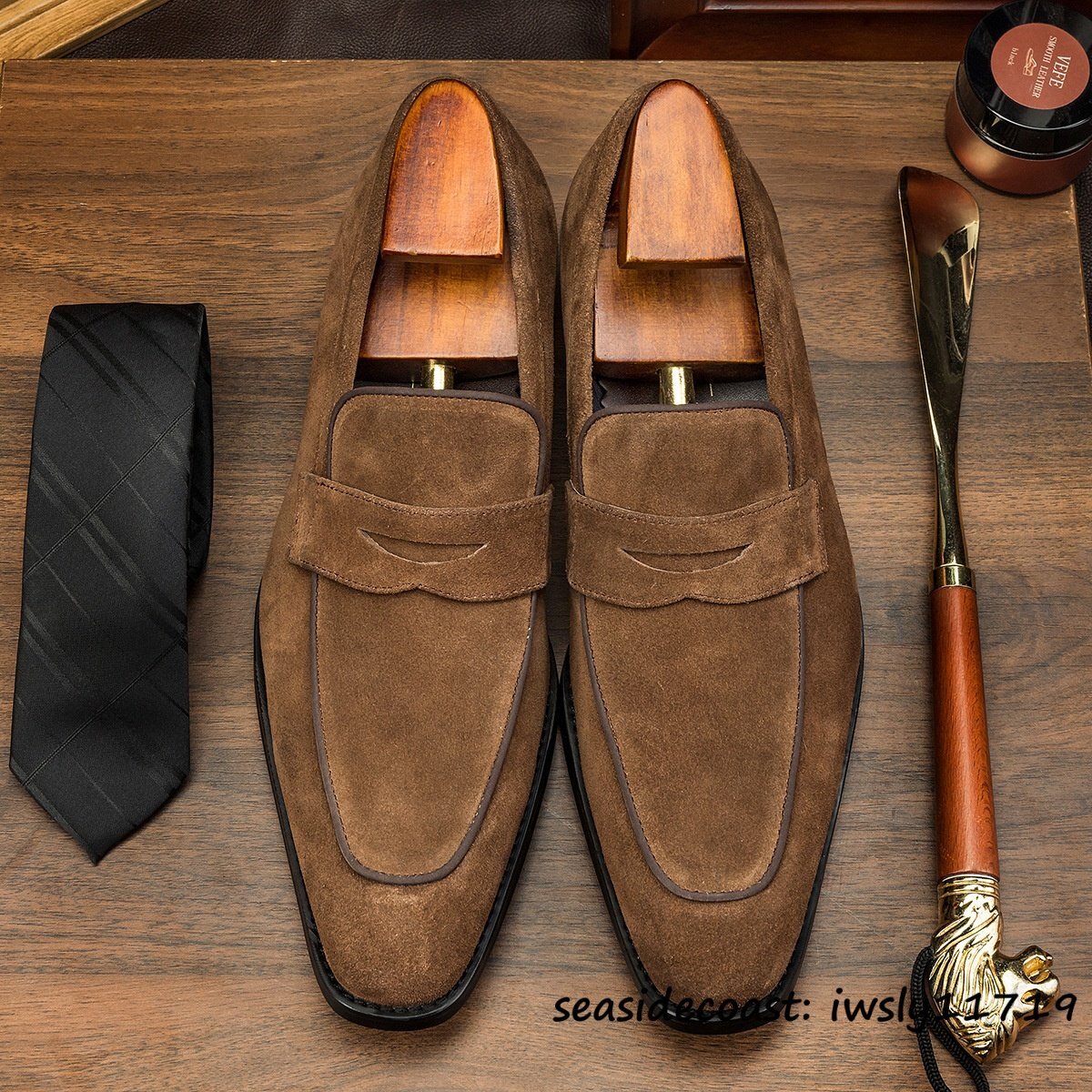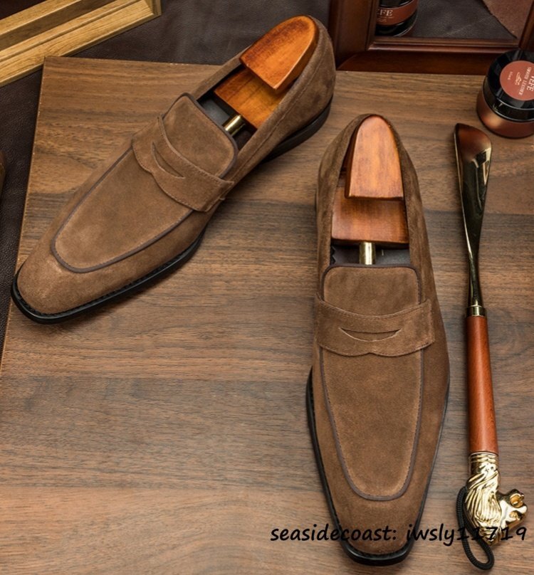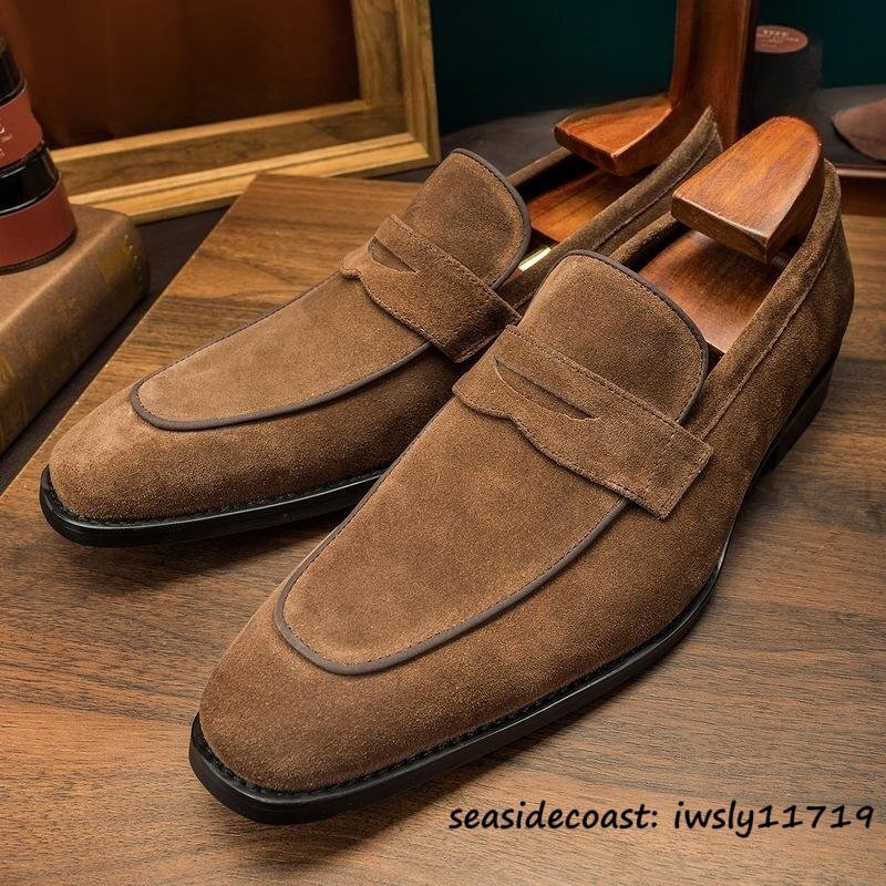 最上級★メンズシューズ 本革 レザーシューズ 高級牛革 職人手作り ビジネスシューズ ローファー 紳士靴 革靴 スリッポン 通気性 27.0cm