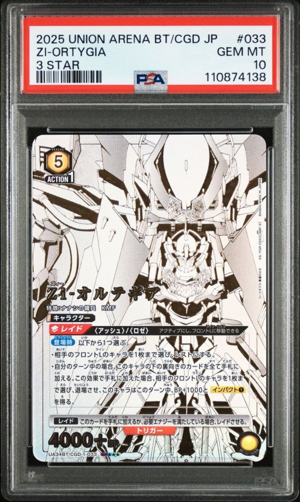 ★ PSA10 UA34BT/CGD-1-033 Zi-オルテギア コードギアス 奪還のロゼ ユニオンアリーナ SR 星3パラレル ★ 鑑定品 美品 ★