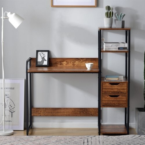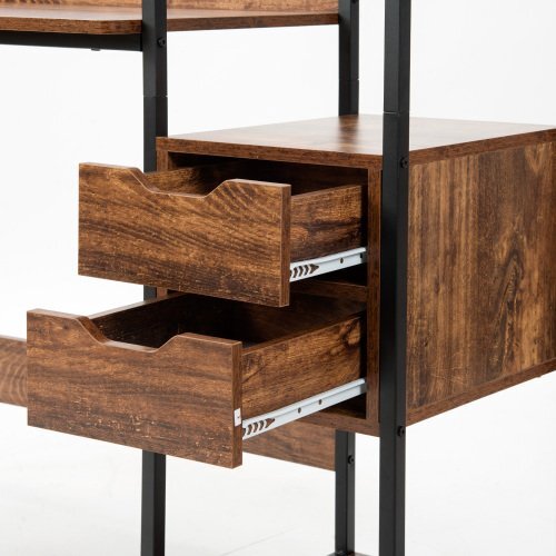 【人気商品】【ダークブラウン】 パソコンデスク 引き出し付き 3段シェルフ付 パソコンデスク 木製 ミシン台 書斎机 学習机 勉強机0.7