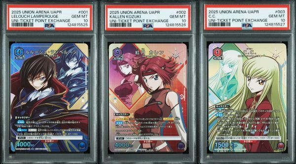 ★ PSA10 UAPR/CGH-P-001 002 003 ルルーシュ カレン C.C ユニオンアリーナ ユニチケット交換 ★ 鑑定品 美品 ★