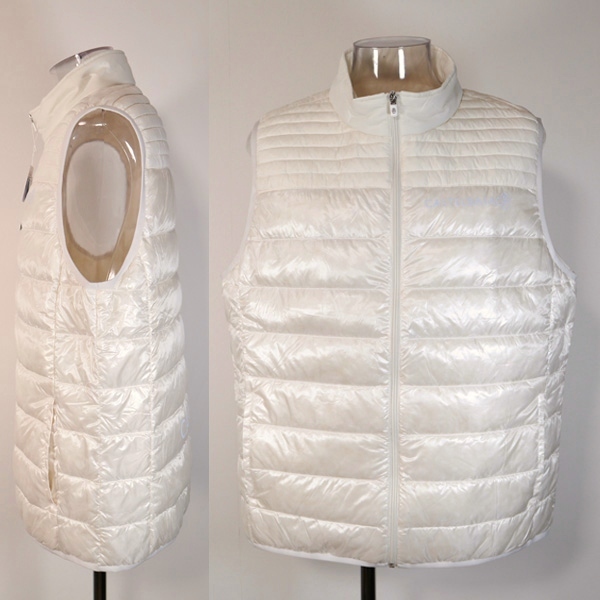| ■形状/ 天然ダウンと高機能ファイバーダウンをブレンドしたライトダウンベストです。 やや薄手でかさばり感がなく動きやすいので運転中やゴルフなどでも着用できます。 軽量でUVカット、撥水の高機能素材を使用しています。 ポケットは表に2ヶ所、内側には長財布が入る深さのが2ヶ所あります。 |