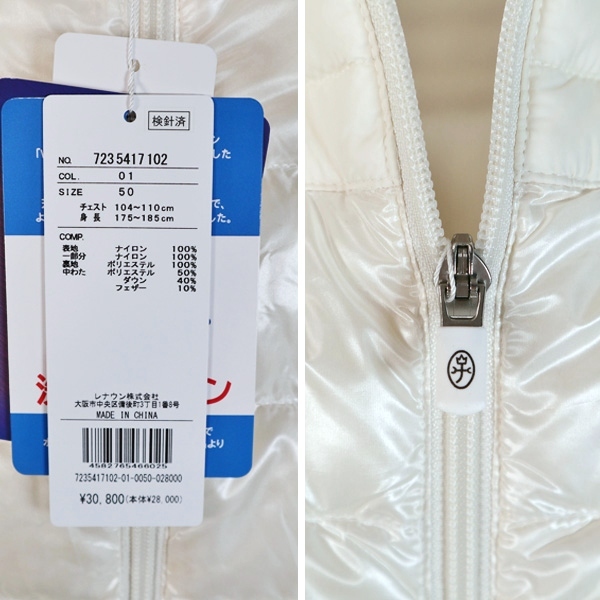 | ■品質/表地・一部分:ナイロン100% 裏地:ポリエステル100% 中綿:ポリエステル50% ダウン40% フェザー10% |