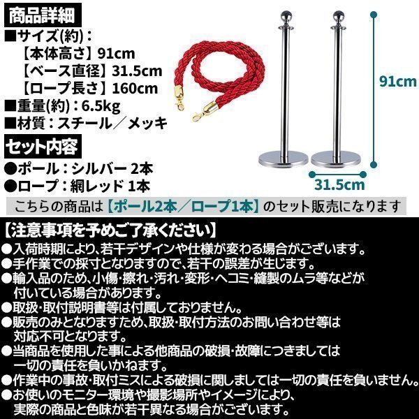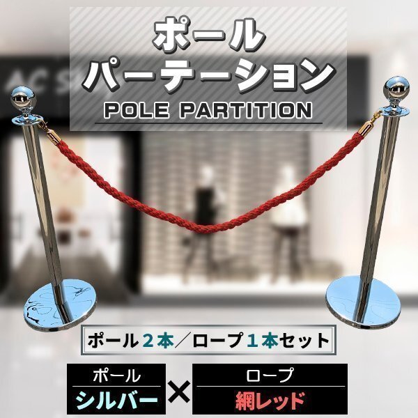 ポールパーテーション 2本 セット シルバーポール レッドロープ 縄 ガイドポール ポール スタンド パーテーション 通路