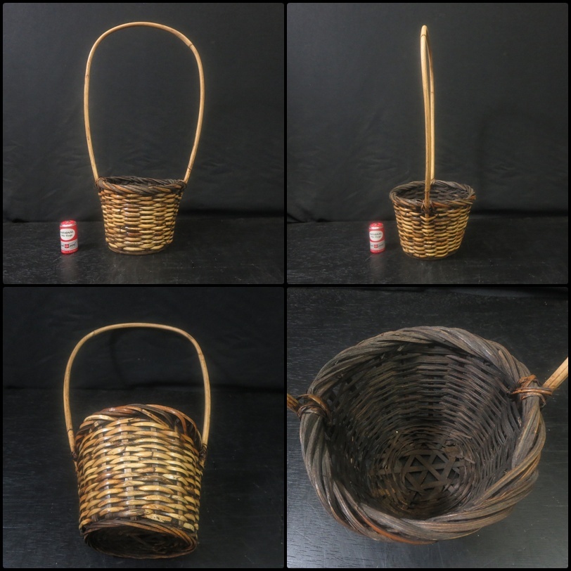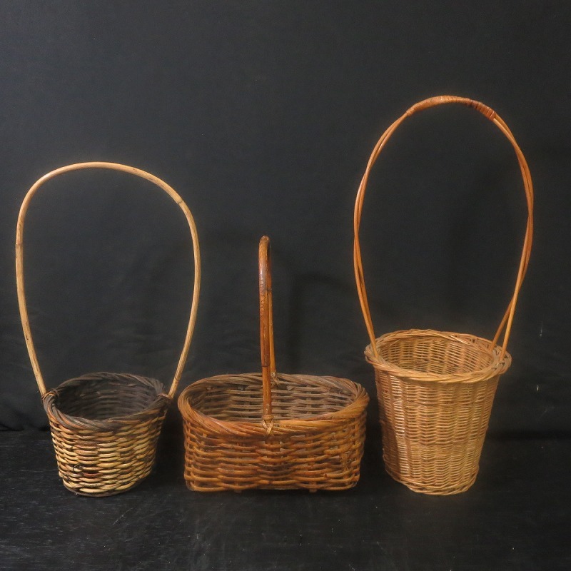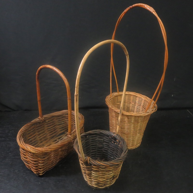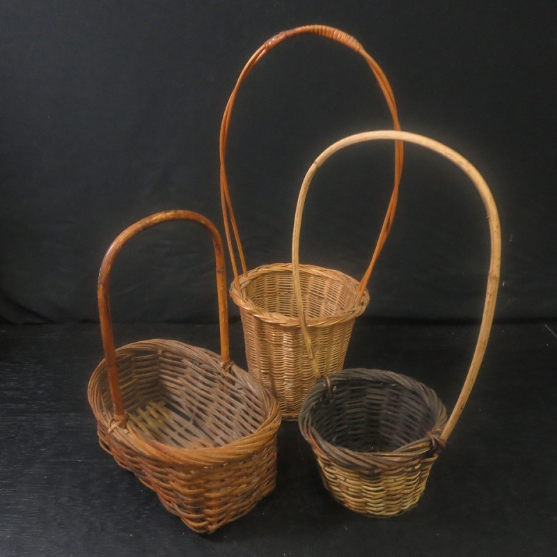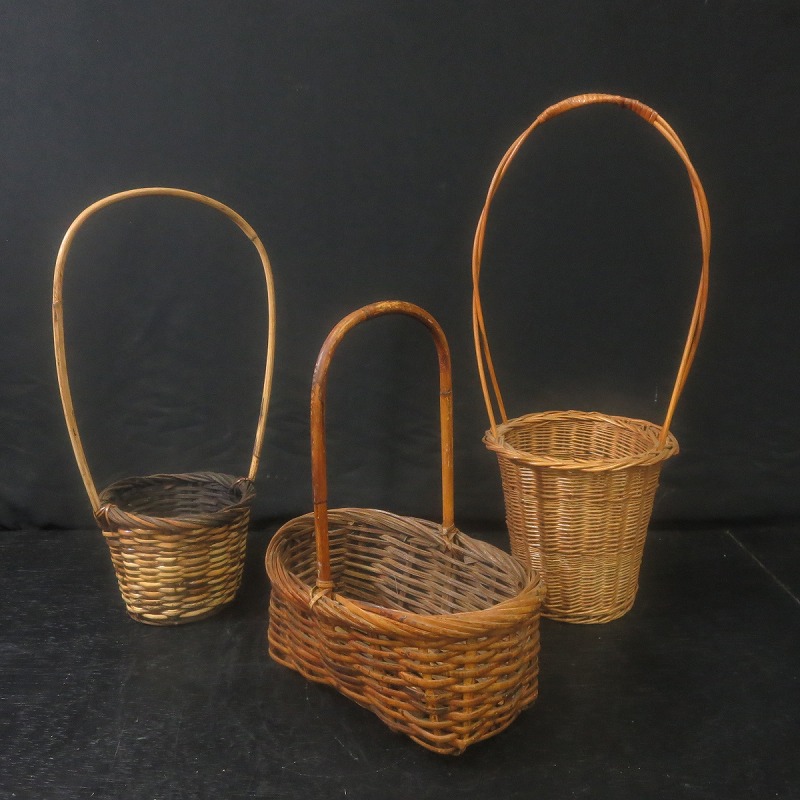 ◇華道具 竹籠 3個 竹細工 藤 手付きカゴ 花器台◇12