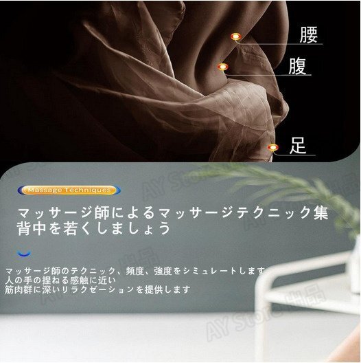 振動、磁気、タッピング、温熱、空気圧、エアバッグ、マッサージ、打撃、揉み、EMS微電流