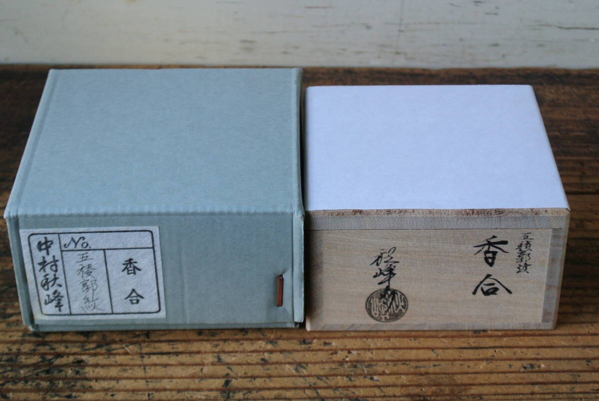 中村秋峰作 五稜郭紋 丸香合 栞 共布 共箱 保証品です。