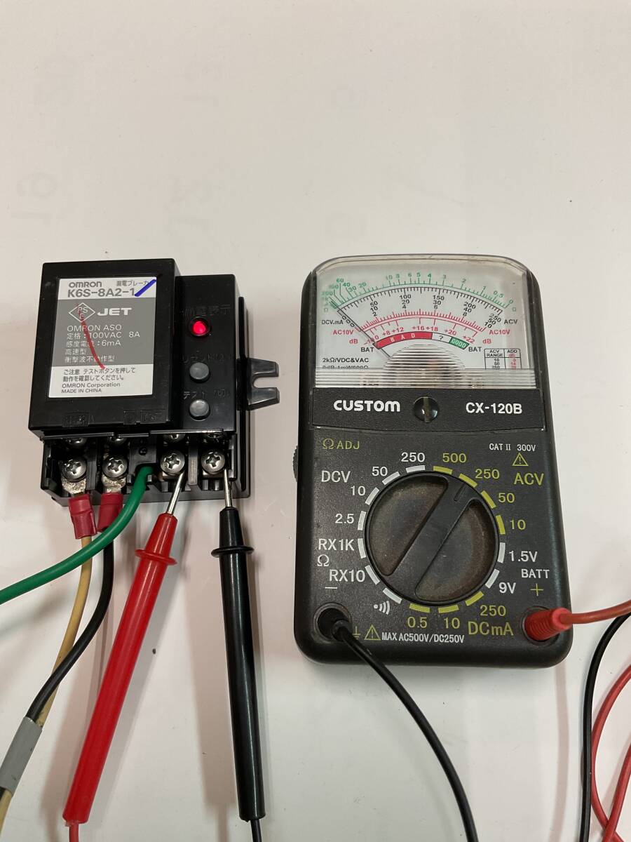 出品にあたり100Vに接続しテストボタンを押して動作を確認しました