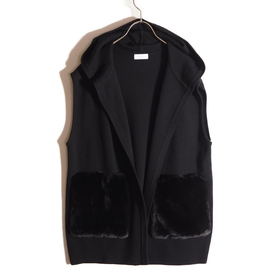 R3820h3 ▼Ballsey ボールジー▼ 24AW ウールポリエステルミラノリブ フーディジレ ブラック S / 黒 フェイクファーボアポケット 秋冬
