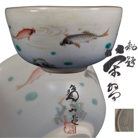 | 商品説明 | 商品名:蔵出し品 雲林院寶山 魚図 茶碗 付属品:共箱あり。 サイズ:高さ6,8cm、口径12,5cm、高台4,8cm。 状態:無傷になります。 |