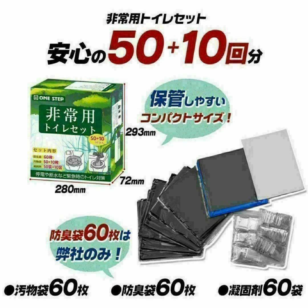 ★非常用 トイレセット 60回分 凝固剤付き 簡易トイレ 携帯トイレ 防災 災害用 アウトドア ポータブル