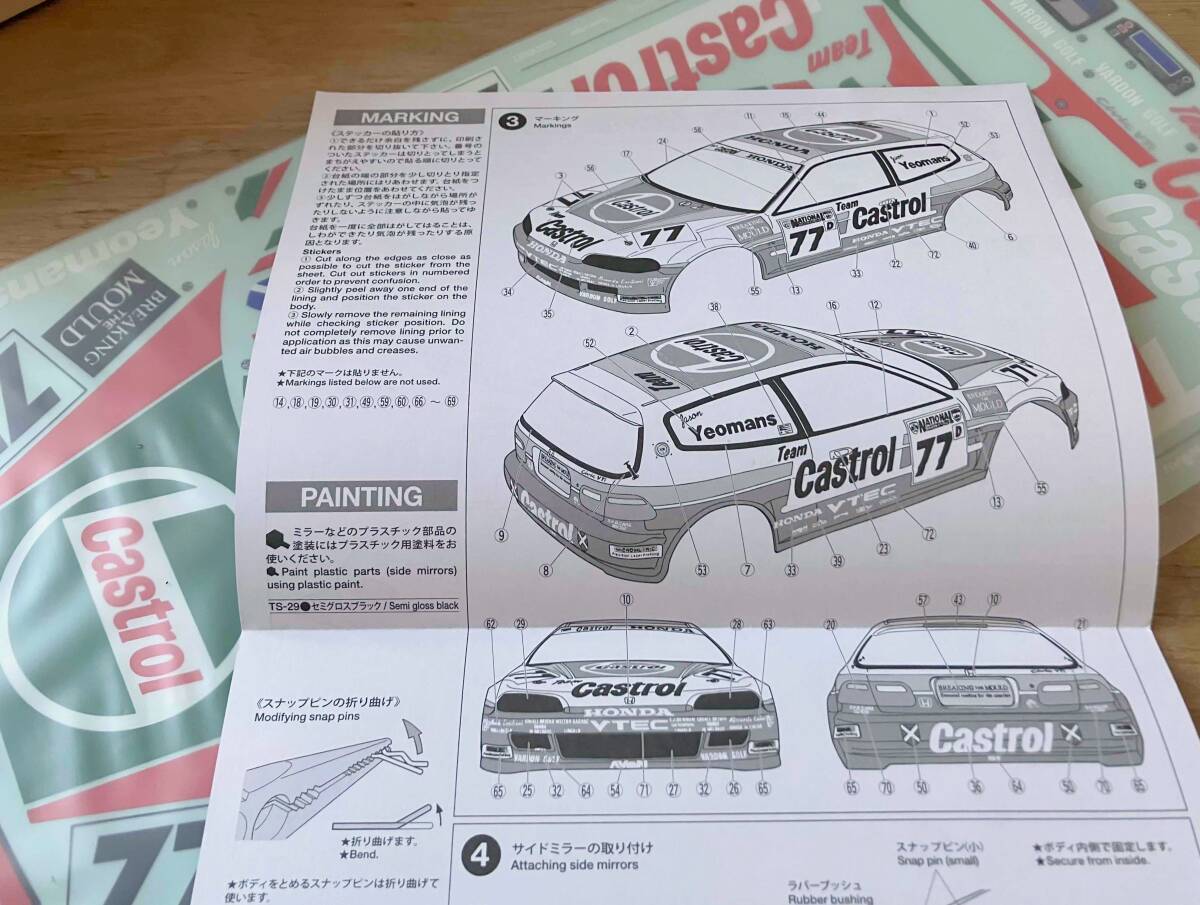 小さいメーカーステッカーが多く流用に便利!タミヤ☆☆完売 1/10RC カストロール Honda シビックVTi デカール ステッカー 定形外可