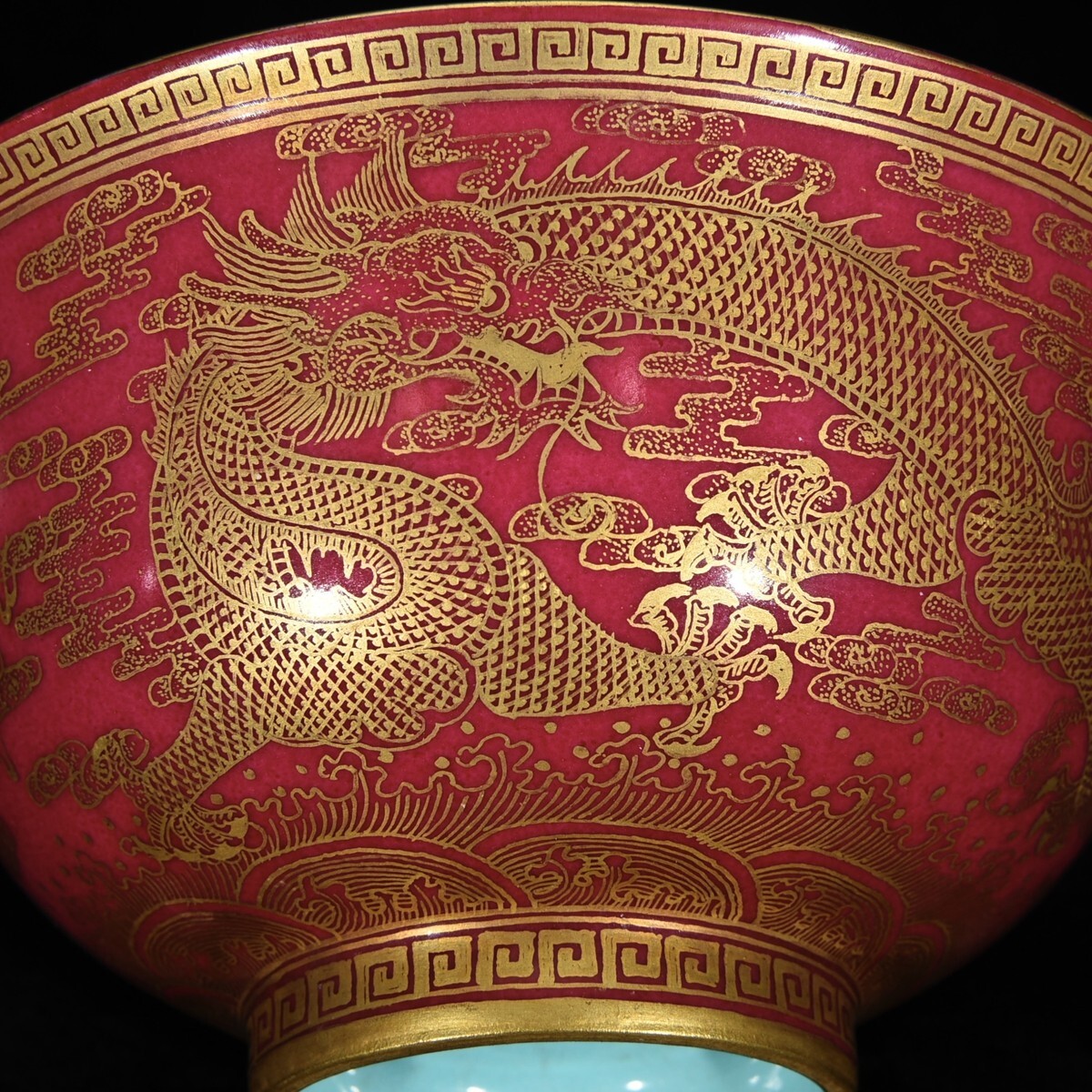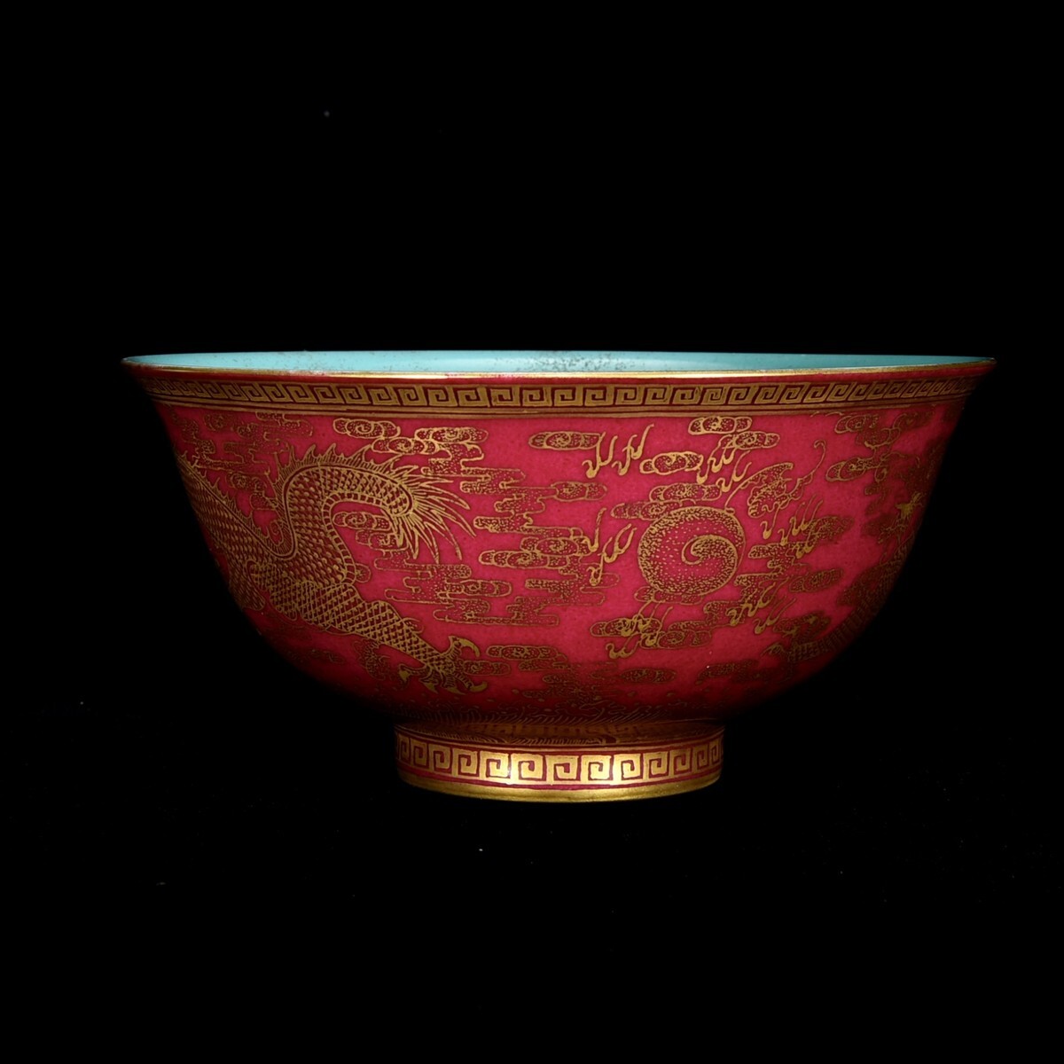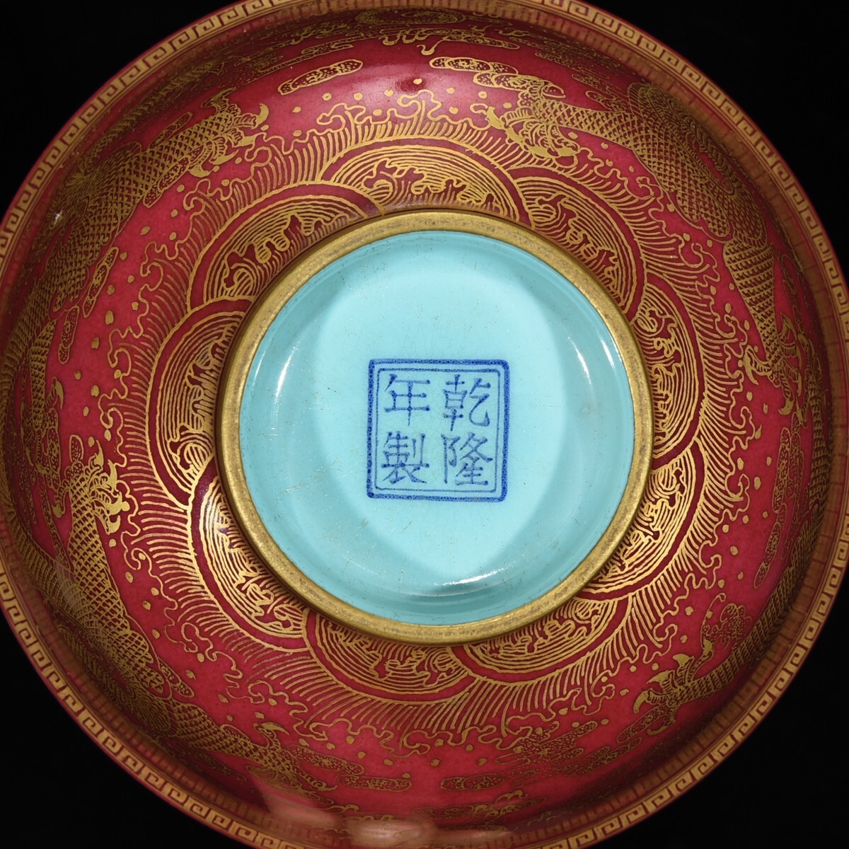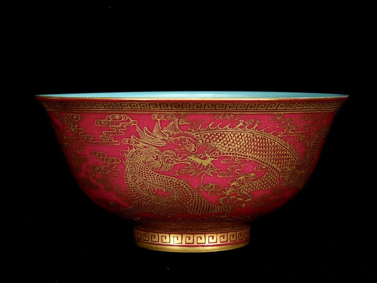 「清 乾隆年製 陶磁器 臙脂紅 金彩龍紋 碗」染付 置物 擺件 古賞物 中国古美術 旧蔵出