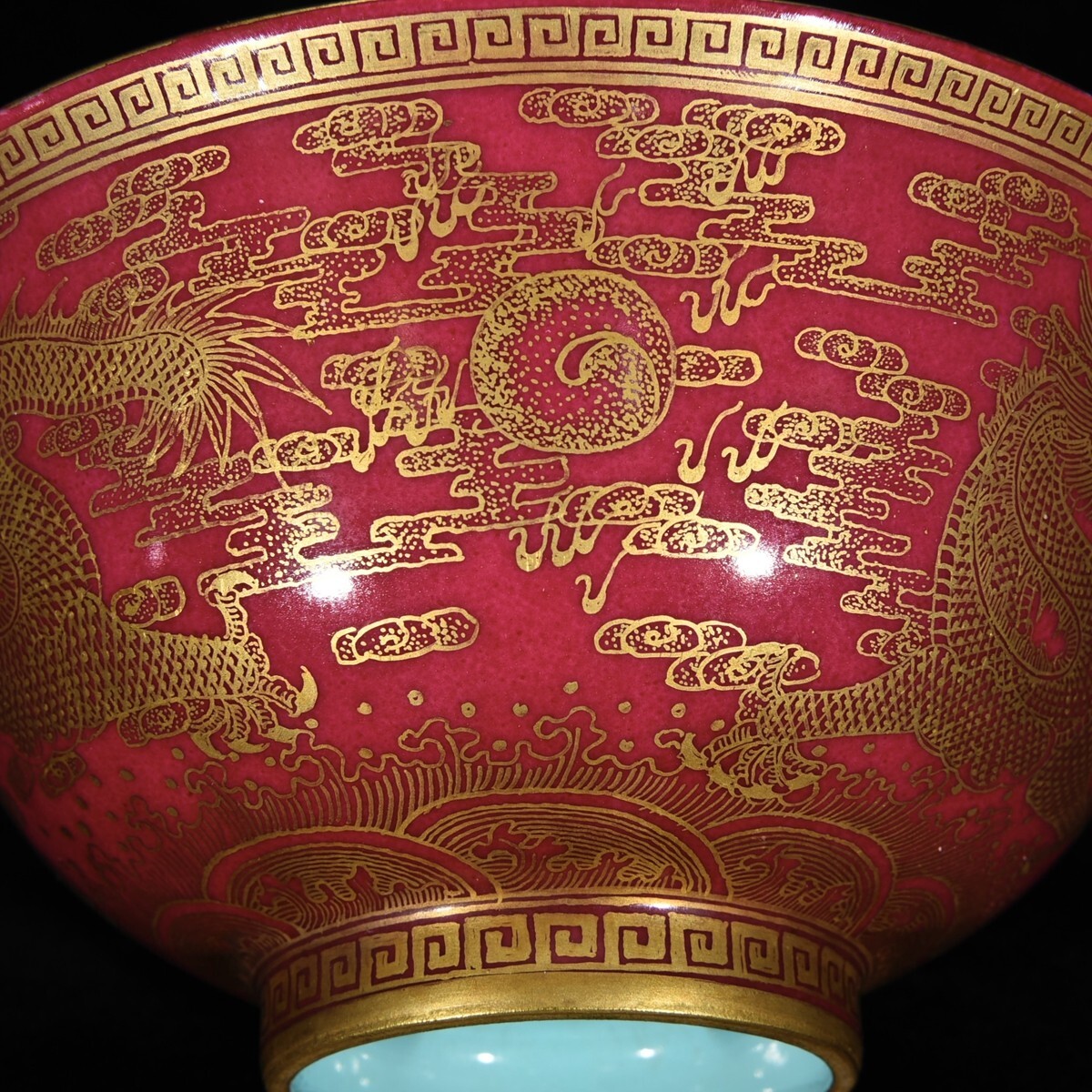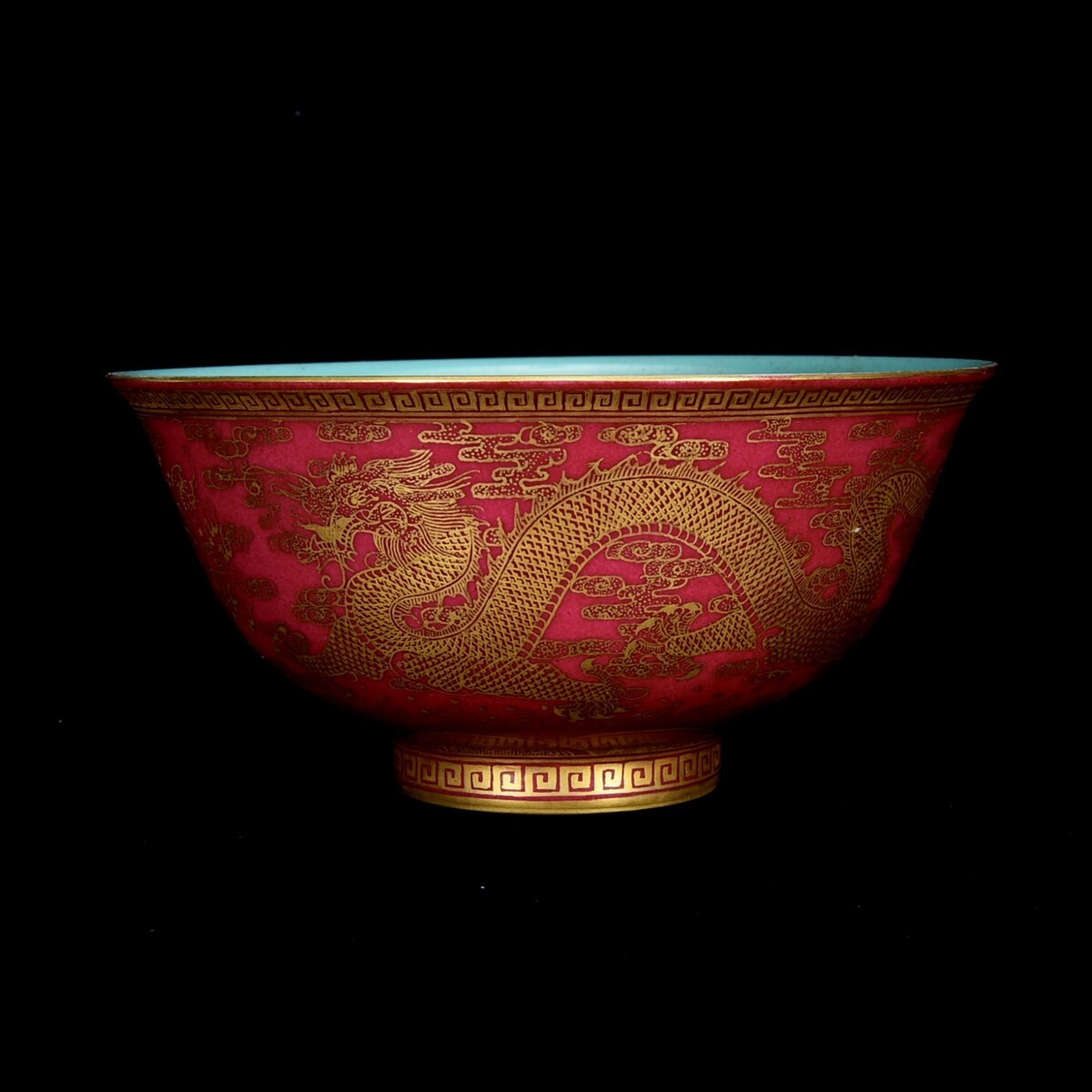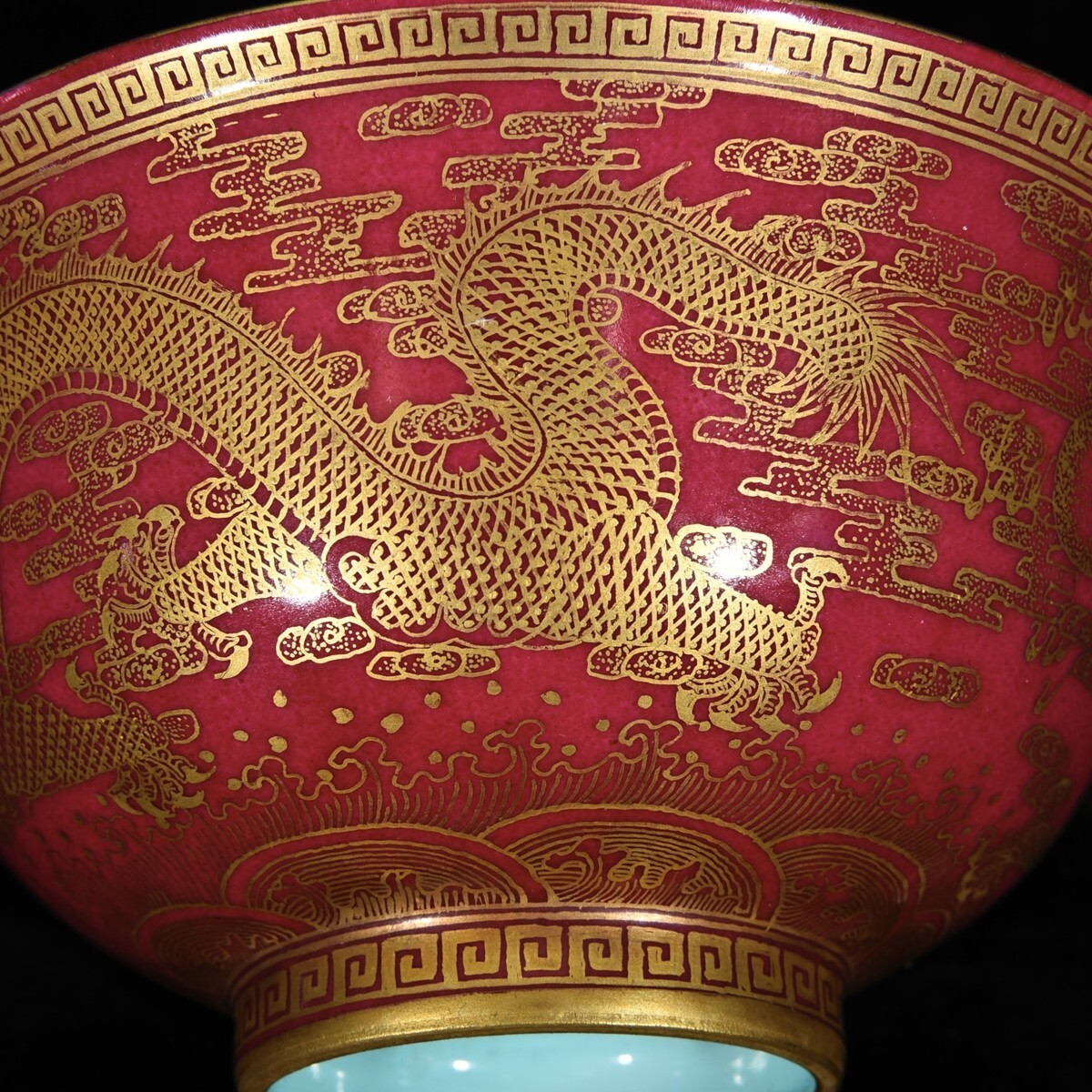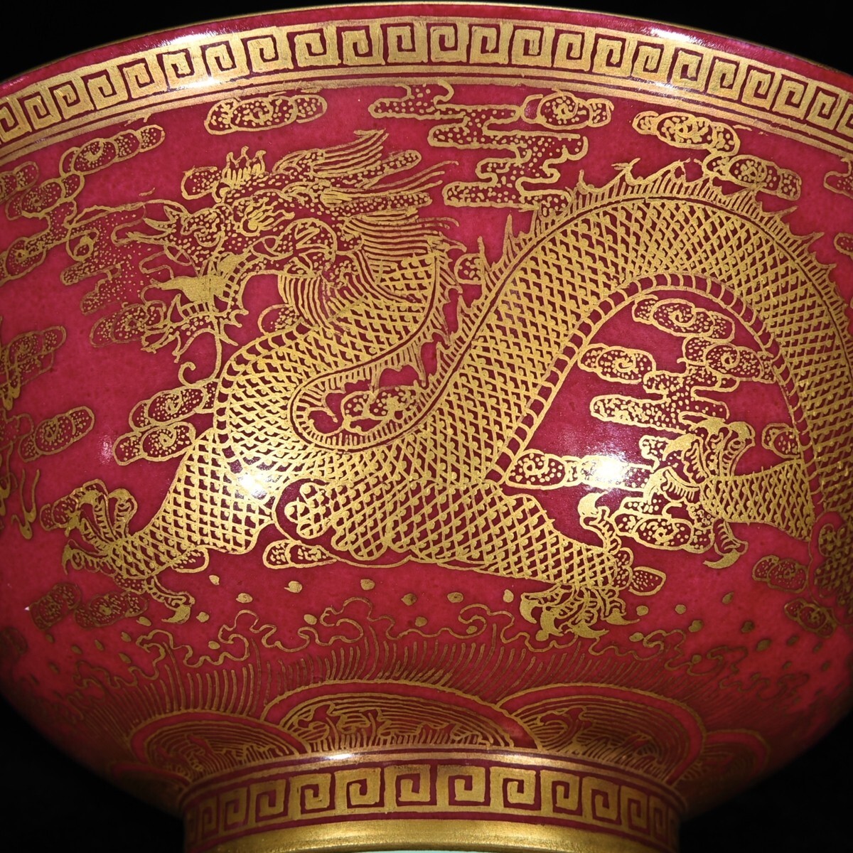 「清 乾隆年製 陶磁器 臙脂紅 金彩龍紋 碗」染付 置物 擺件 古賞物 中国古美術 旧蔵出