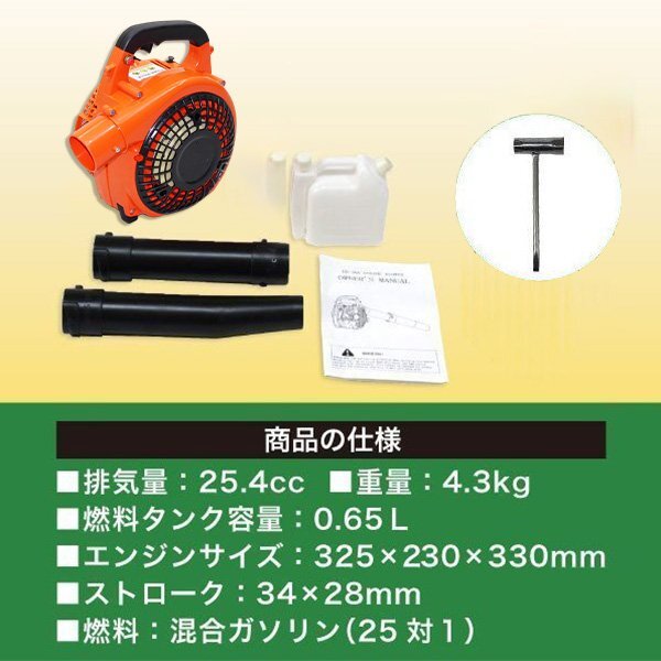 未使用 ブロワー バキューム エンジン式 集塵機 2サイクル 25.4cc ハンディ 落ち葉 吸い込み 吹き飛ばし 送風機 除草 作業 DIY