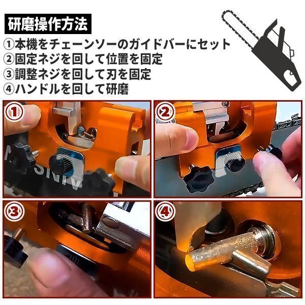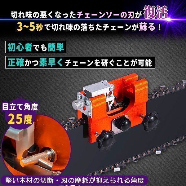初心者でも簡単に素早く正確にチェンソーの刃を研ぐことができます。