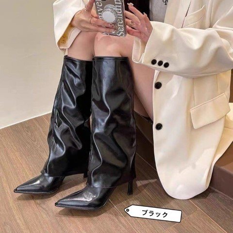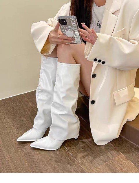 ニーハイブーツ ヒール 細ヒール ロングブーツ スパイクシューズ レディースシューズ 【39】24.5cm オフホワイト