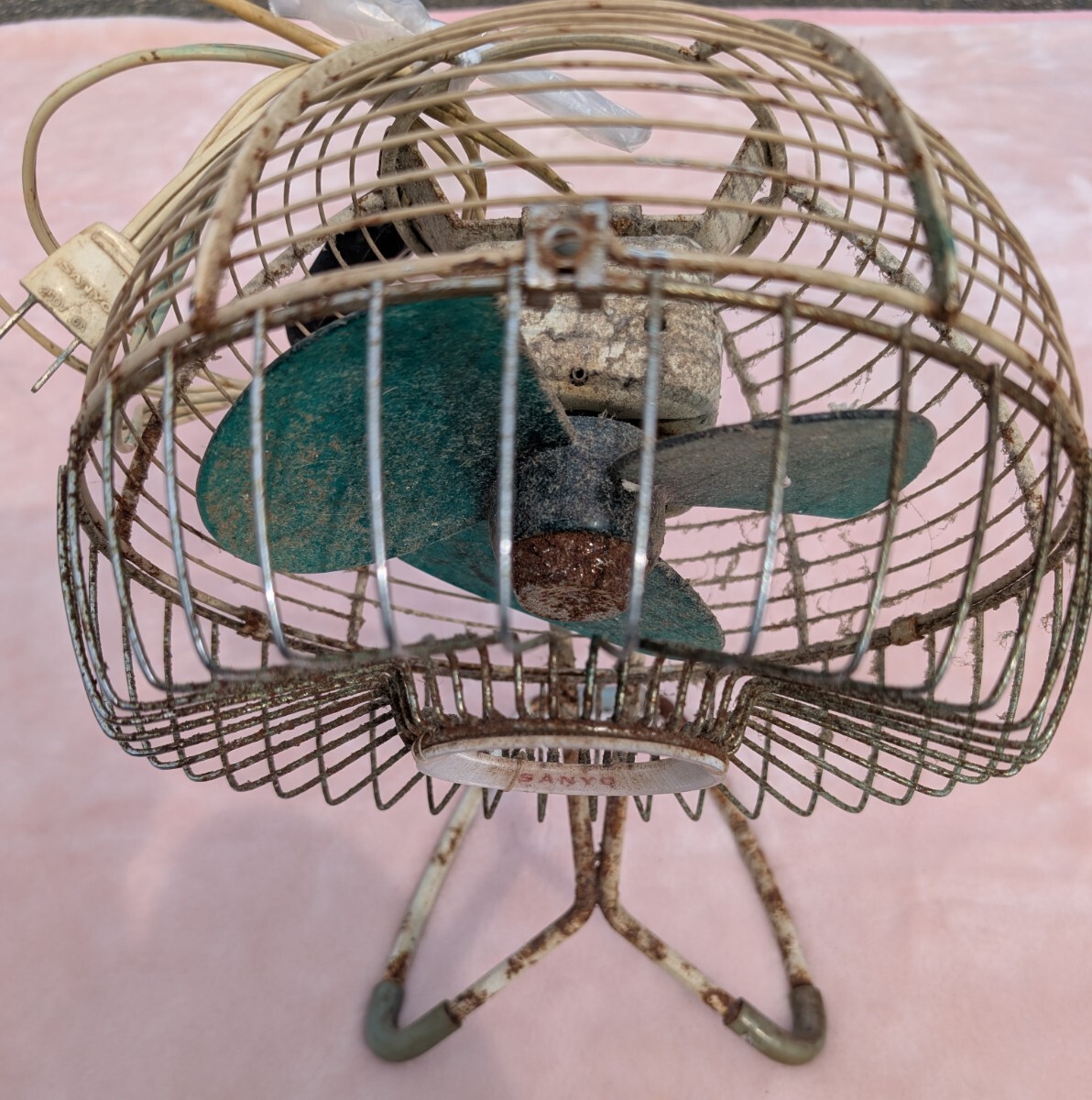 サンヨーレトロ扇風機ELECTRICFAN 緑色の3枚羽