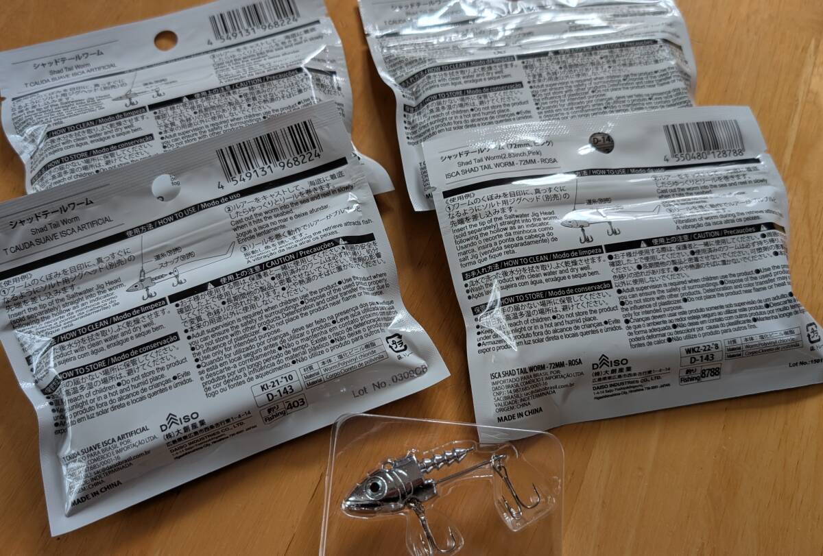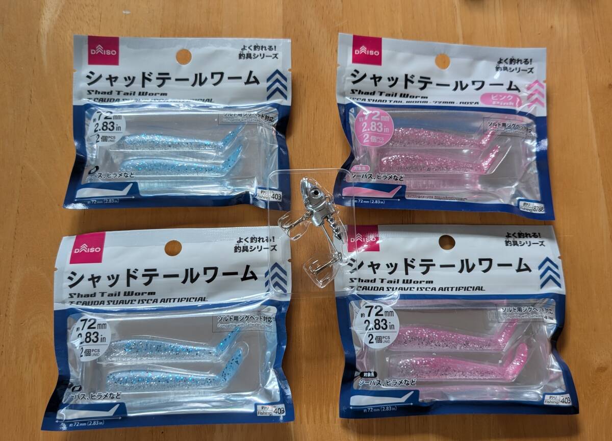 ワーム未開封品4パック(2色×2)にジグヘッド1つ付きセットです。