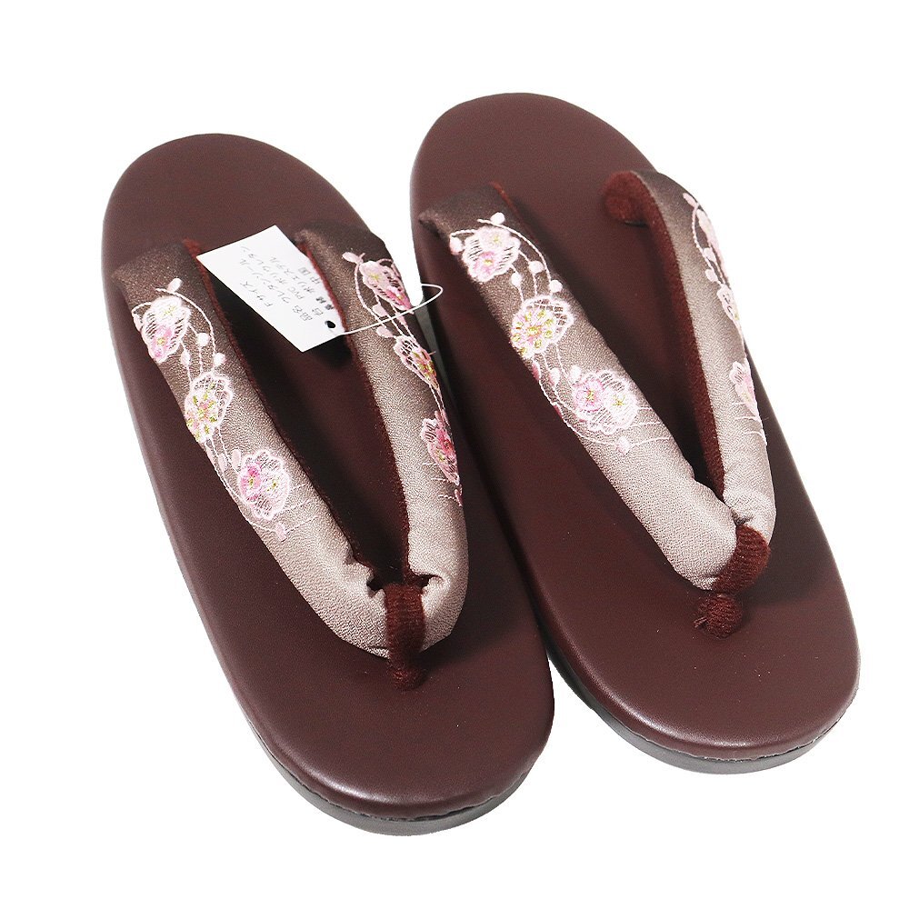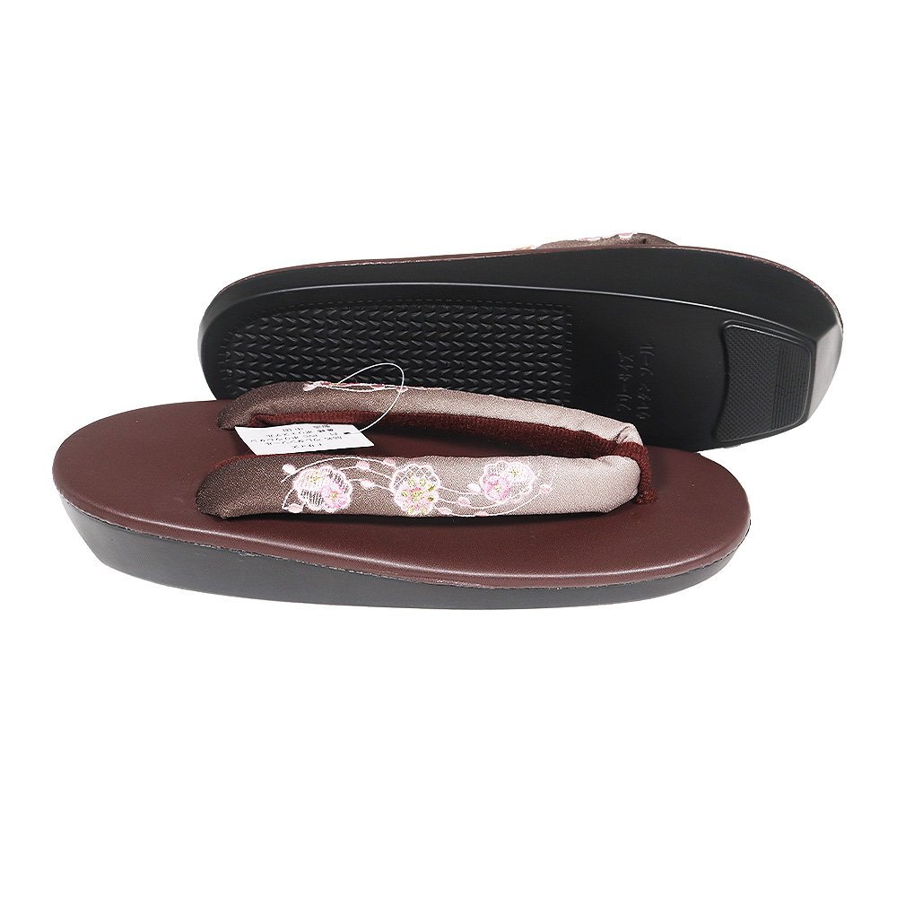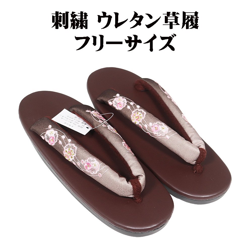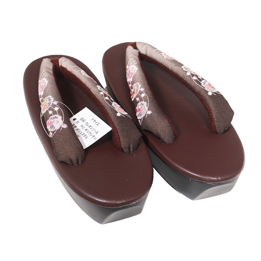 | 商品 | 婦人用 ウレタン草履 Fサイズ 濃茶暈し色地 刺繍 花柄鼻緒 濃茶色台 ウレタンソール 新品 |