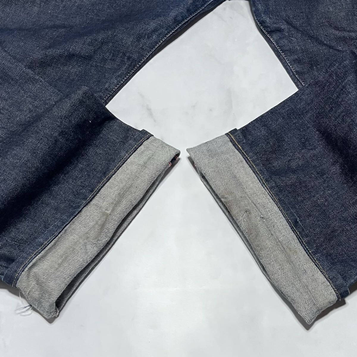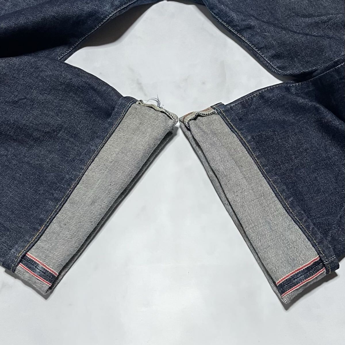 コットン100%セルビッジデニムを使用し、経年変化を楽しめる濃紺インディゴの風合いが魅力的です。