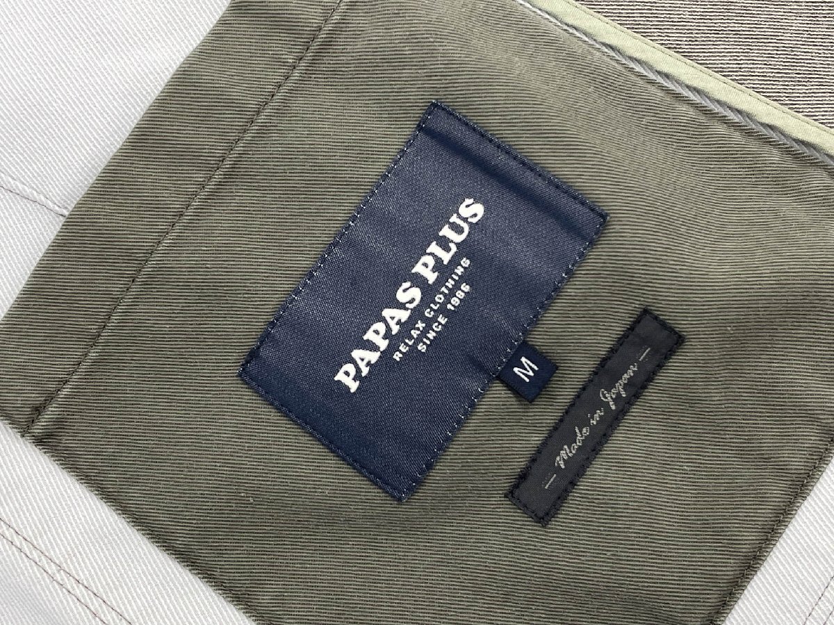超美品【PAPAS PLUS パパスプラス】D043AFJ 006 3ボタン デニム風生地 セットアップスーツ (メンズ) sizeM カーキ系 ◇35RMS2742◇