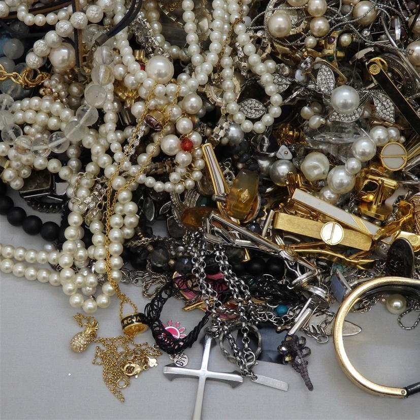 | 商品詳細 | ・ネックレス、ブローチ、リングや盃など総重量約12kgのまとめ売りとなります。スレ傷、汚れなどあり。破損している物や不揃い、変色している物、絡みが酷い物など混在しているためジャンク品扱いでの出品となります。 ・配送中ブローチの針などが出てしまう可能性がございます。開封時は注意していただきますようお願いいたします。 ・袋にまとめて入れただけの簡易梱包での発送となります。個別に梱包は行っていない旨ご了承ください。 ※送料:全国一律2,000円 |