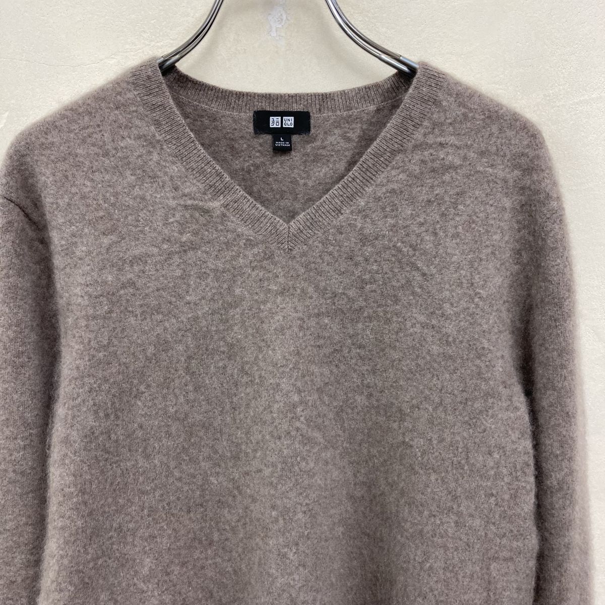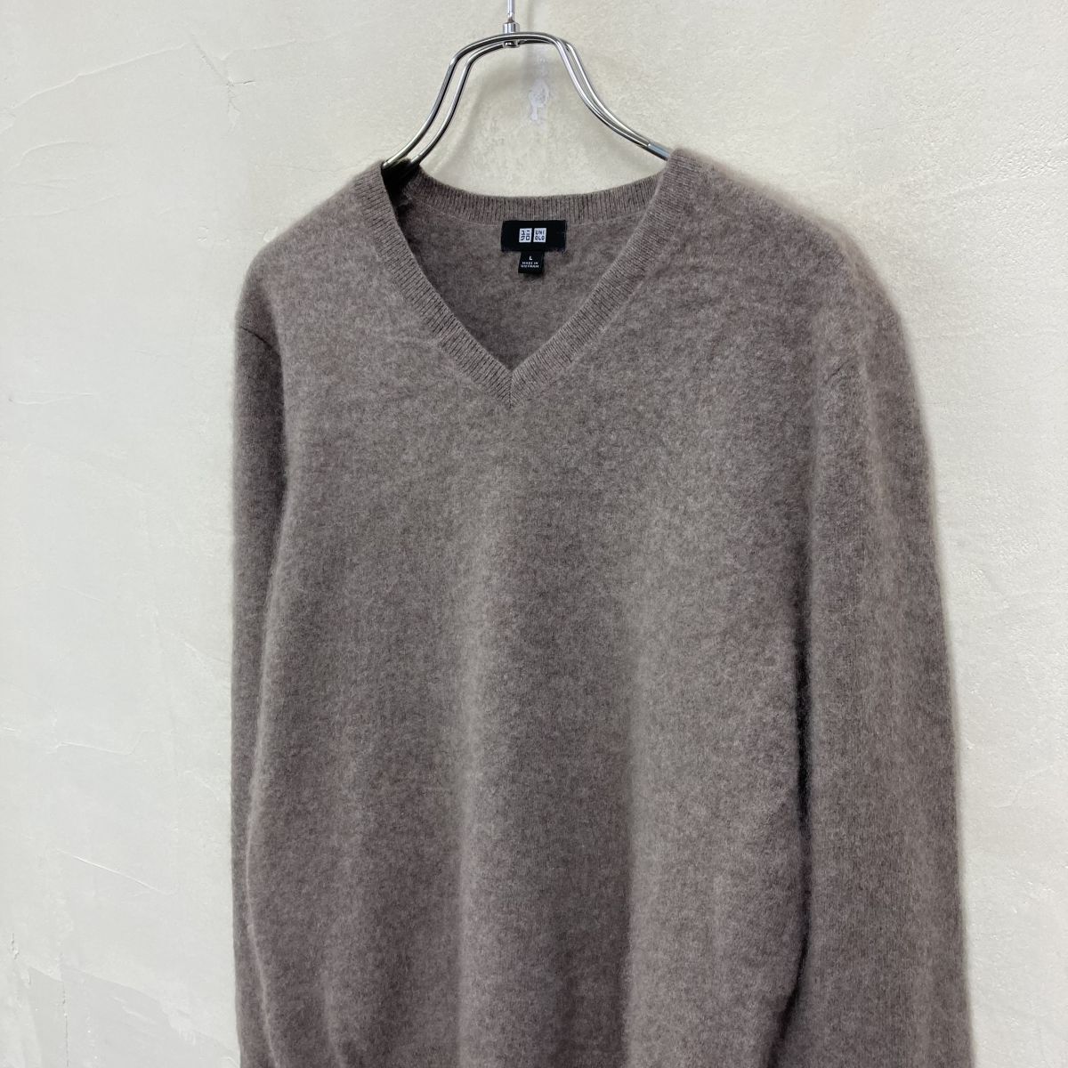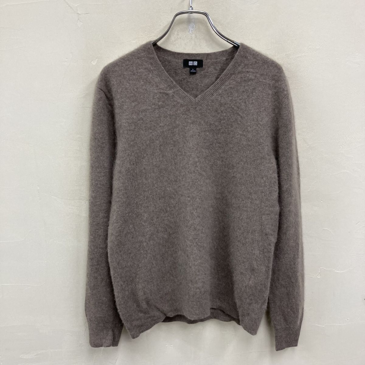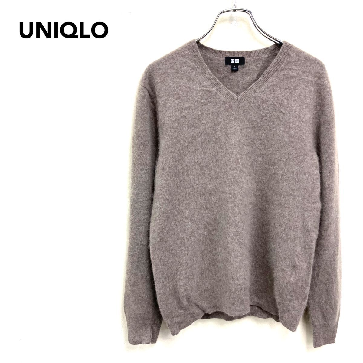 2O3043-W◆UNIQLO ユニクロ カシミヤニット 長袖 プルオーバー Vネック シンプル きれいめカジュアル◆size:L グレー ブラウン系 カシミヤ