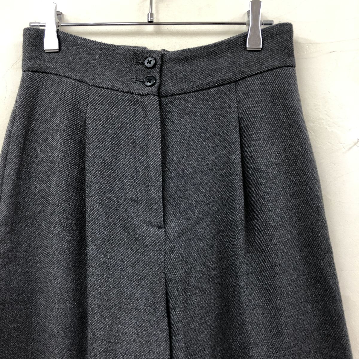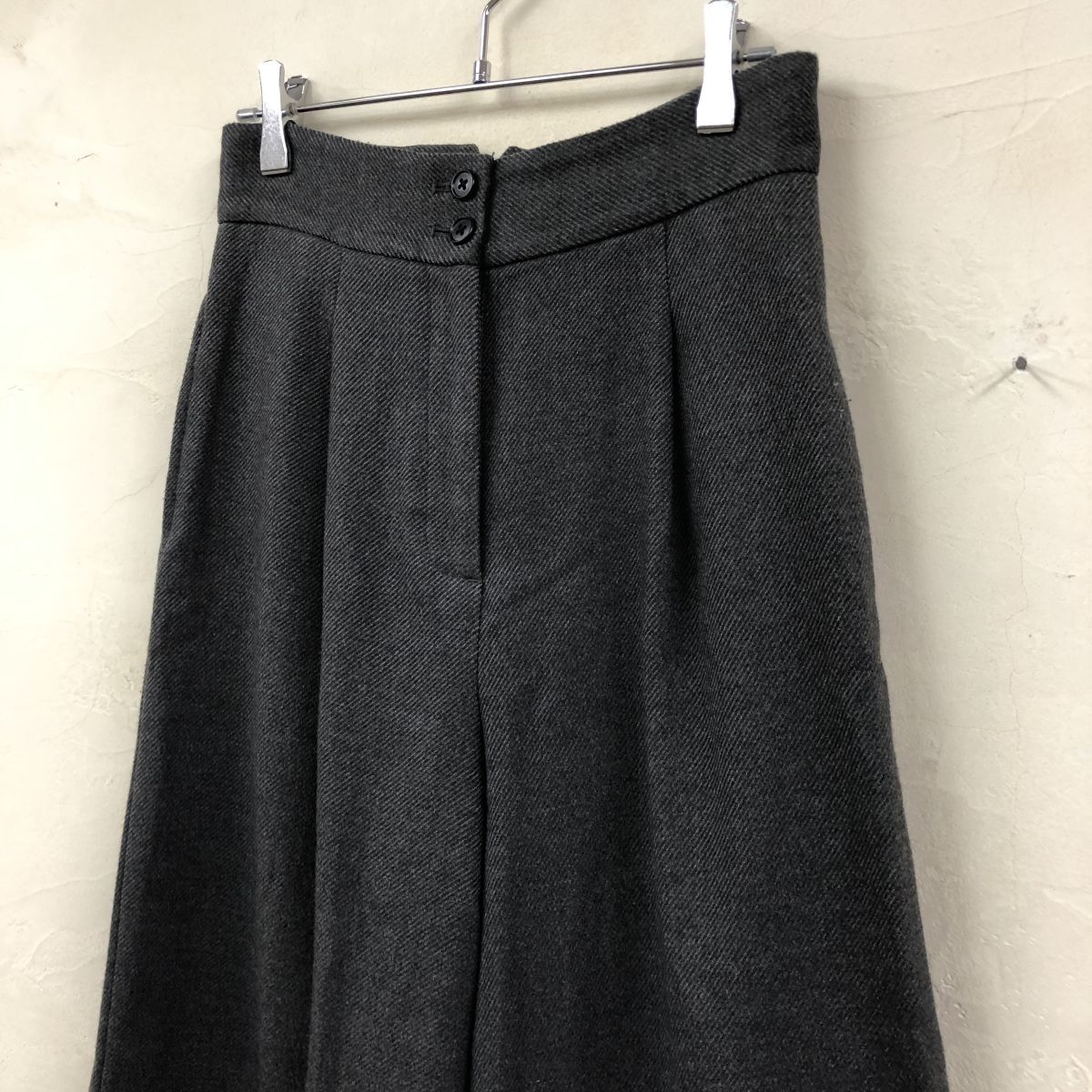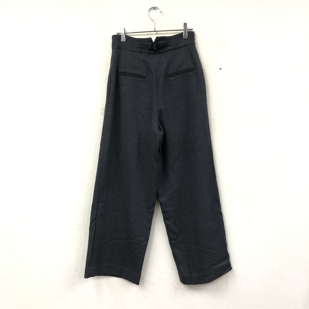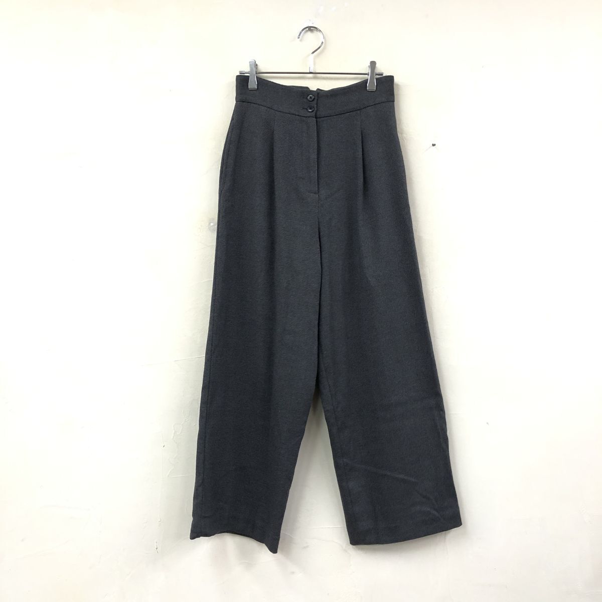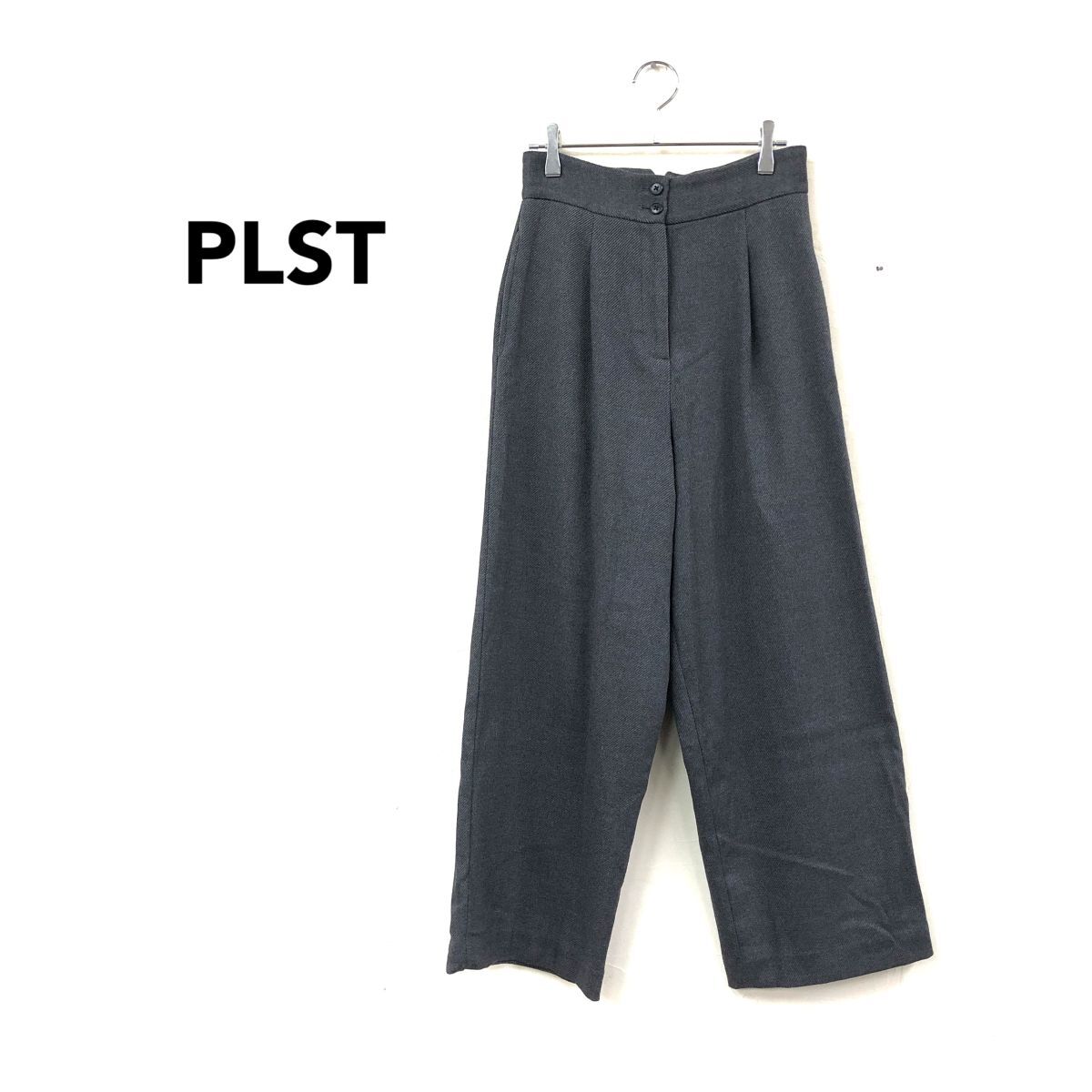 2N1010-Y-N◆PLST プラステ ハイウエストワイドストレートパンツ ワンタック ストレッチ レディース ◆sizeXS ダークグレー ポリエステル