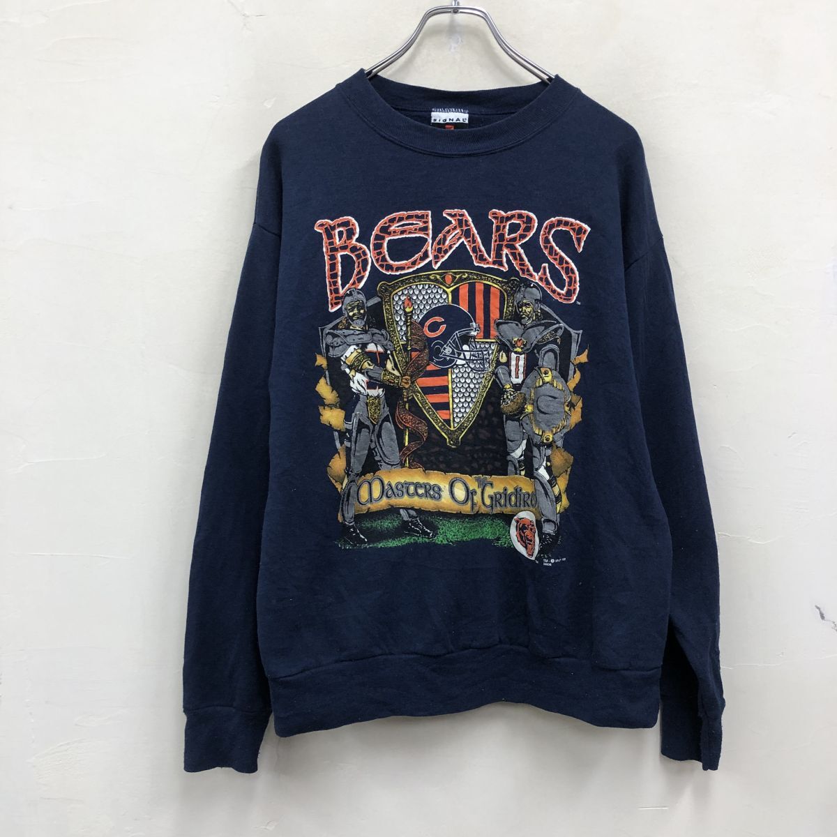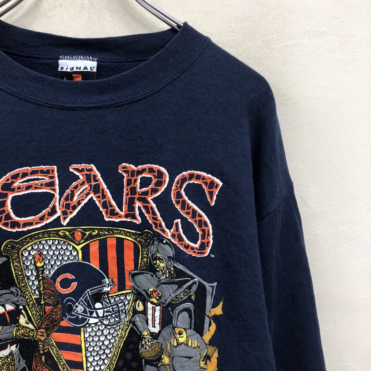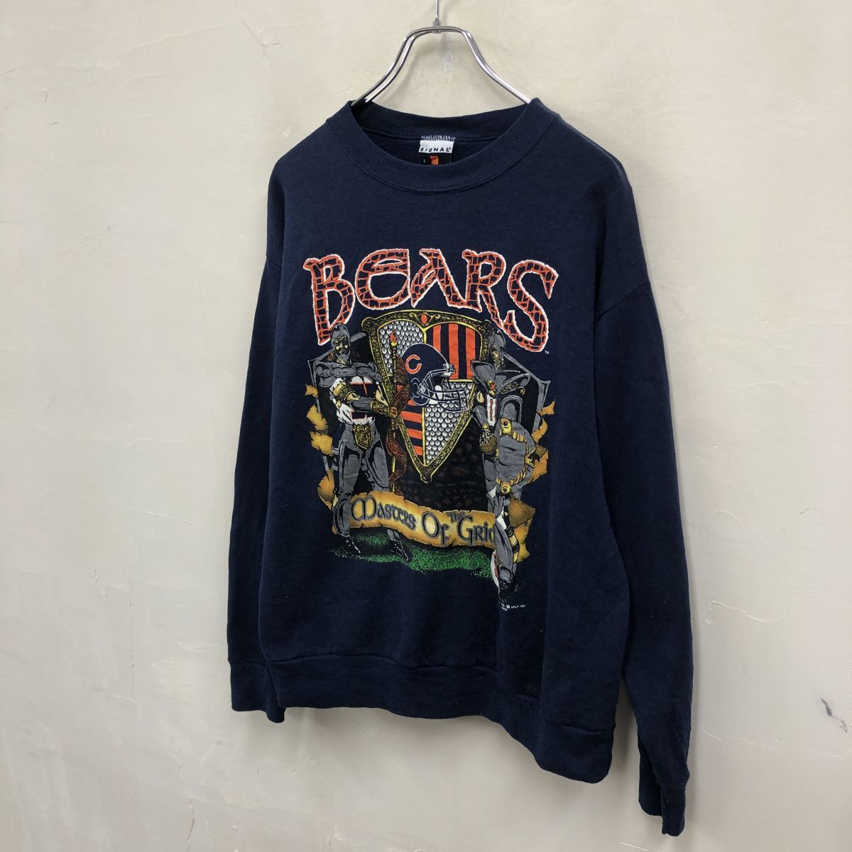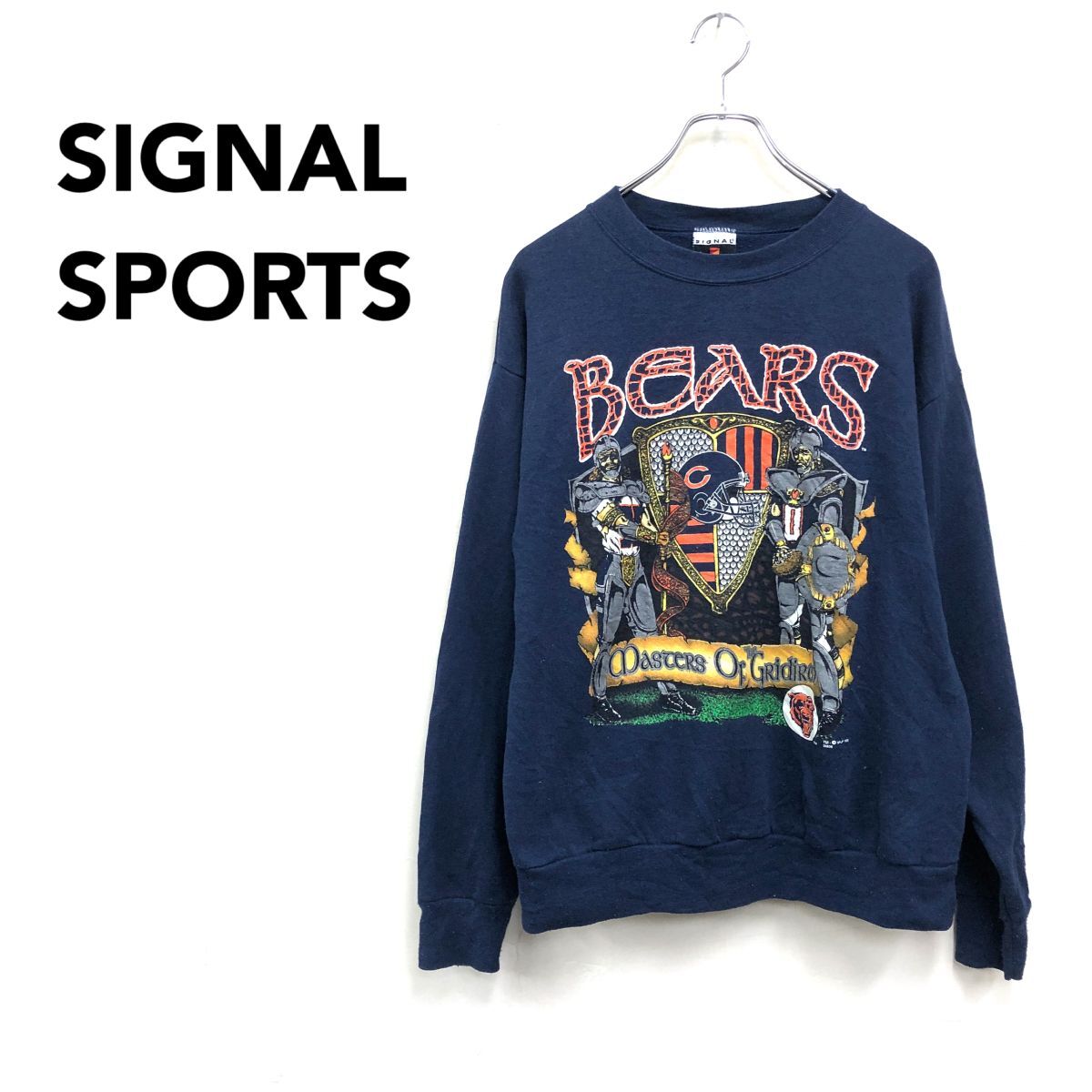 2O3087-G◆ SIGNAL SPORTS シグナルスポーツ USA製 old bears プリントスウェットシャツ トレーナー リブクルーネック ◆sizeL ネイビー 綿