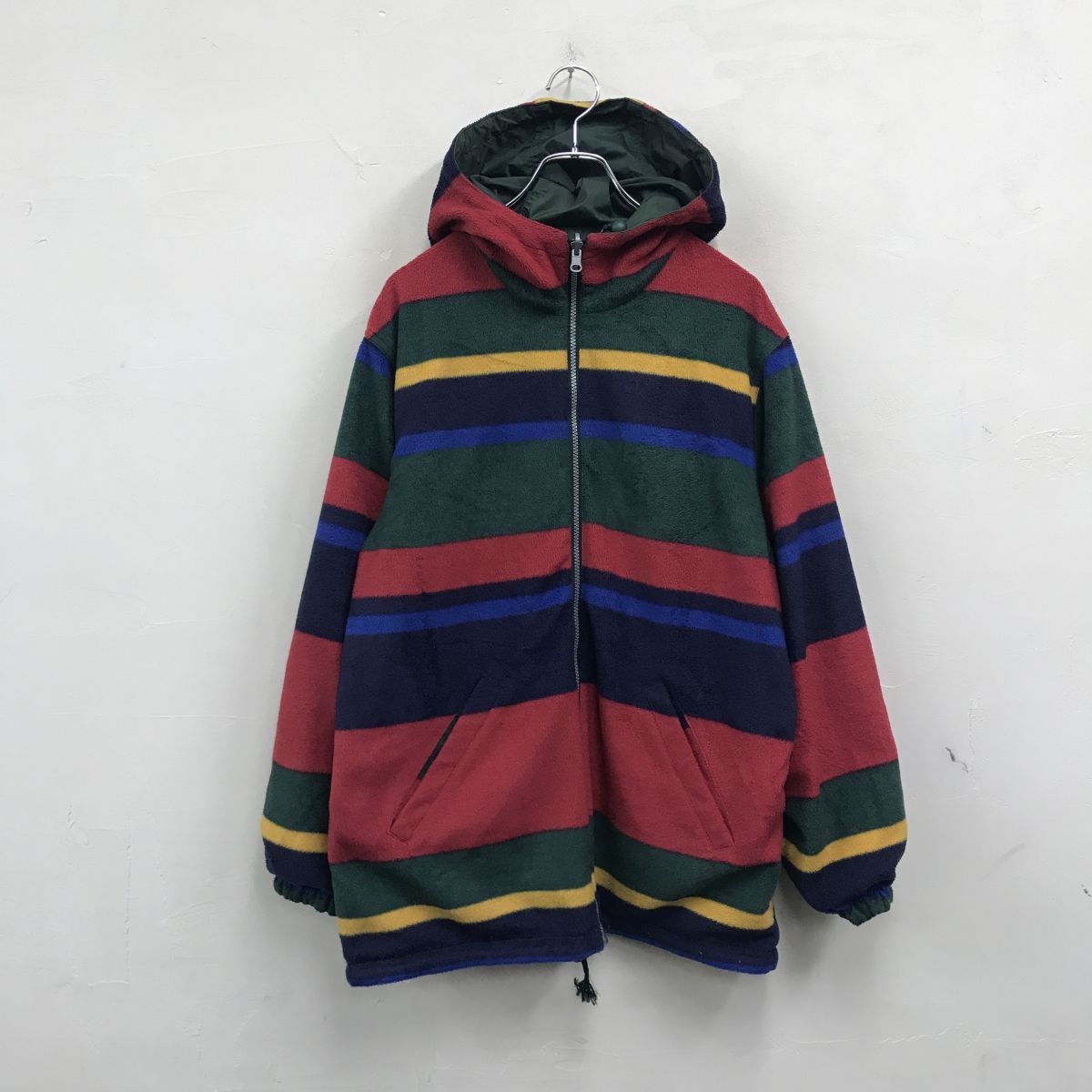 2N1037-G◆ OTTO オットー リバーシブルジップアップフーデッドジャケット フリース ボーダー ドロスト ◆ sizeLL カーキ ナイロン