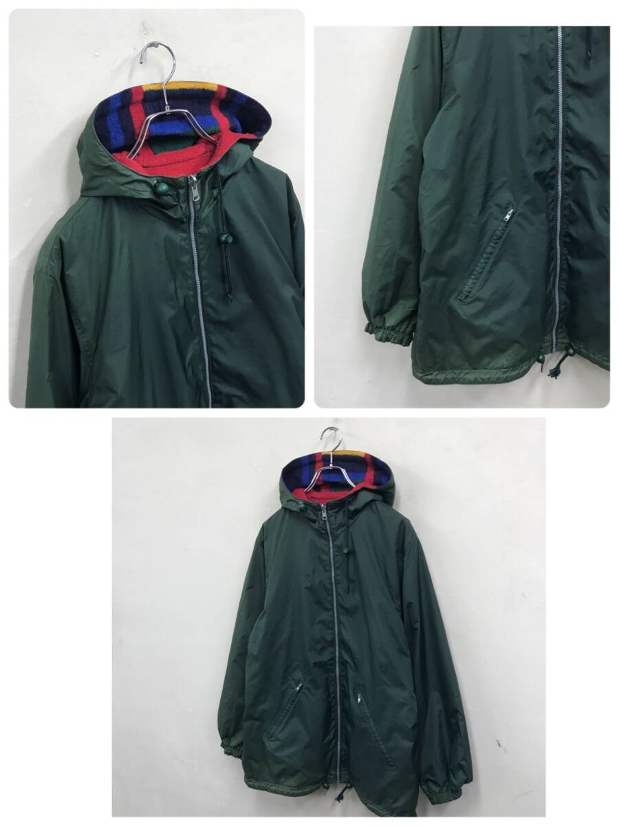 2N1037-G◆ OTTO オットー リバーシブルジップアップフーデッドジャケット フリース ボーダー ドロスト ◆ sizeLL カーキ ナイロン